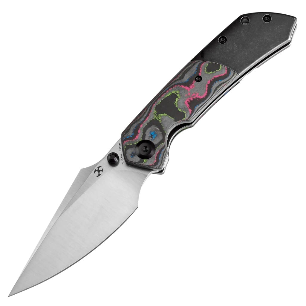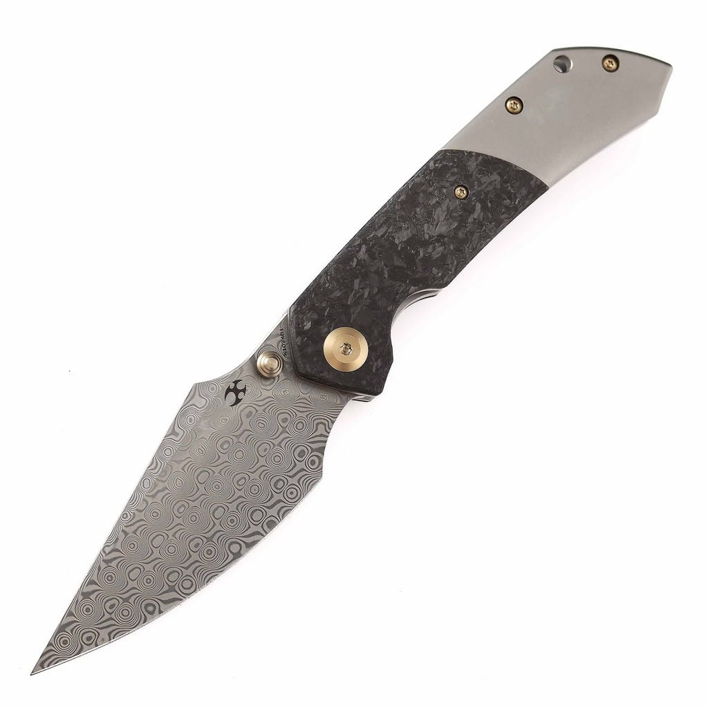 Fenrir firmy Kansept Knives to ciekawy folder EDC zaprojektowany we współpracy z uzdolnionym Gregiem Schobem, założycielem Sparrow Knife. Model charakteryzuje się świetną precyzją wykonania oraz eleganckim i nowoczesnym designem. Posiada drapieżny kształt głowni o profilu Harpoon, wykonany ze stali damasceńskiej o interesującym wzorze, bardzo dobrze ukrywającym wszelkie niedoskonałości powstające podczas eksploatacji. Klingę osadzono na ceramicznych łożyskach kulkowych, która przy wykorzystaniu obustronnego kołka lub front flippera wysuwa się płynnie i gładko. Prosta obsługa jedną ręką zadowoli zarówno osoby prawo, jak i leworęczne. Niewielkie karbowanie na grzbiecie głowni stanowi wsparcie dla kciuka, a nad bezpieczeństwem czuwa blokada Top Liner Lock z przyciskiem na rękojeści, służącym do składania narzędzia. Uchwyt to stabilna tytanowa rama, do której zamocowano eleganckie okładziny z włókna węglowego. Wyprofilowanie pod palec zapewnia dobrą kontrolę nad nożem w każdej sytuacji. Na zakończeniu umieszczono otwór umożliwiający przełożenie breloka ozdobnego lub paracordu. Konstrukcję uzupełnia dwupozycyjny klips mocujący ułatwiający wygodne przenoszenie noża w kieszeni spodni lub przy wyposażeniu. W zestawie znajduje się ściereczka z mikrofibry oraz wysokiej jakości pokrowiec do transportowania narzędzia, a całość zapakowano w czarne pudełko prezentowe. Kansept Knives to uosobienie najnowocześniejszych technologii i praktycznego wzornictwa. Jej motto brzmi “Nie tylko produkujemy noże, czynimy je lepszymi”, co doskonale oddaje charakter tej marki. Firma wyróżnia się z tłumu innowacyjnymi koncepcjami angażując do współpracy najlepszych projektantów z branży. Każdy element jest skrupulatnie obrabiany za pomocą zaawansowanych maszyn lub ręcznie, tworząc znakomite połączenie kunsztu i estetyki.