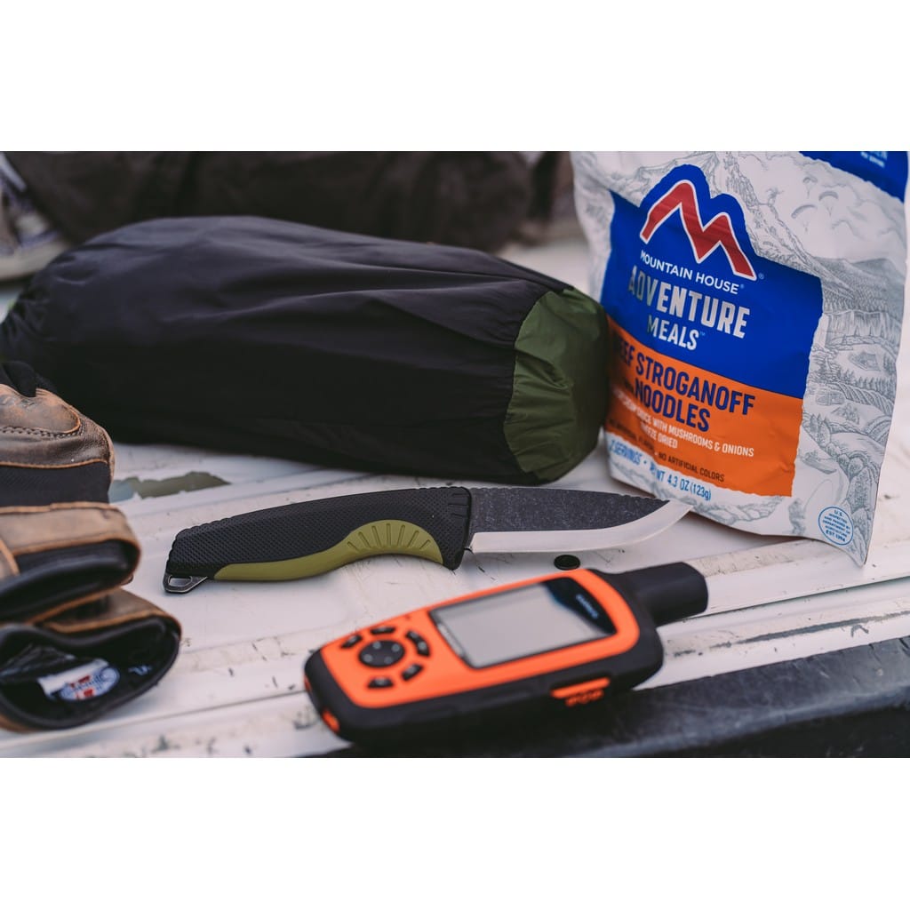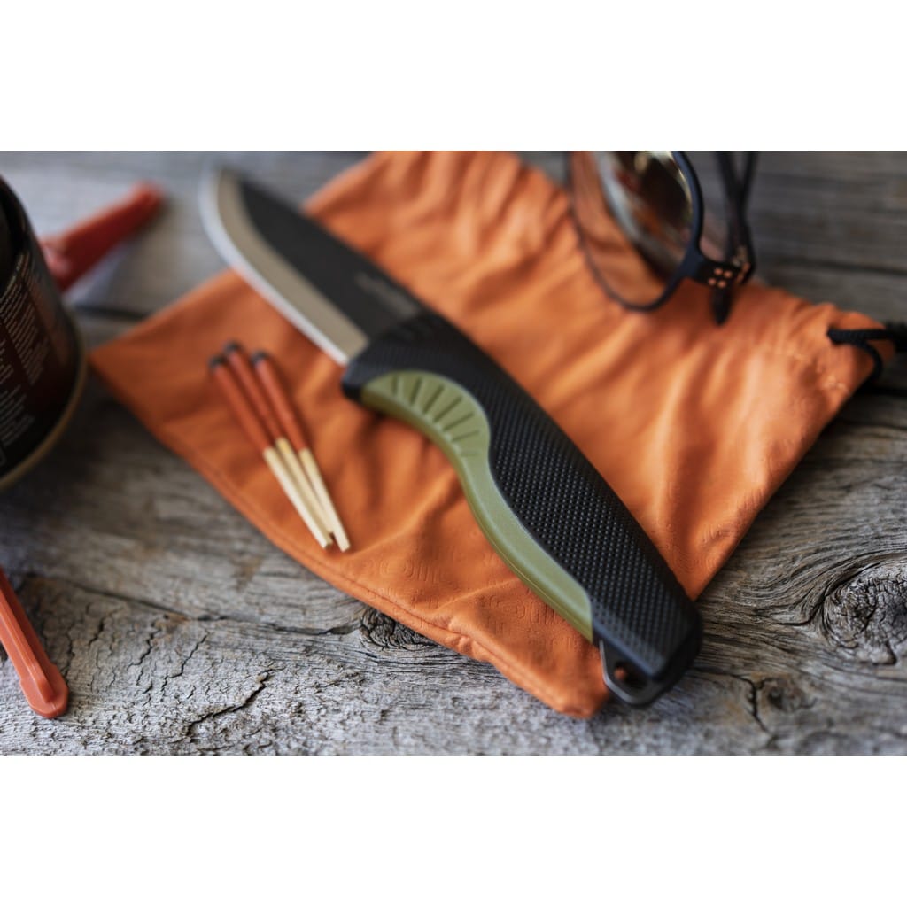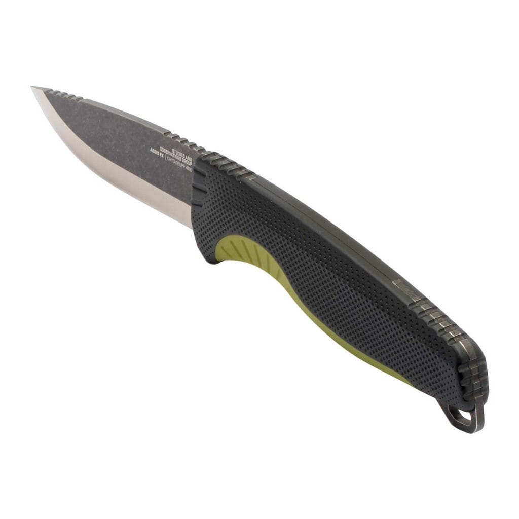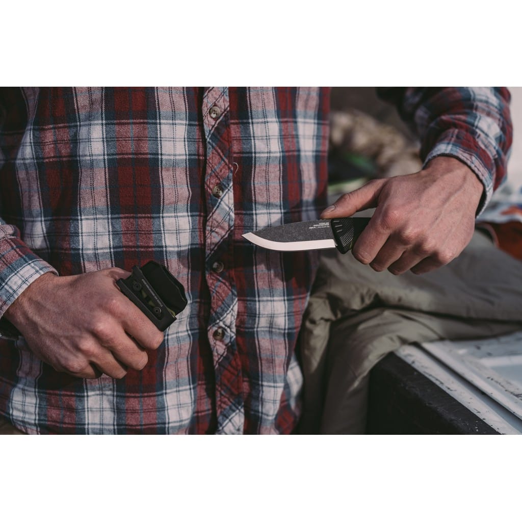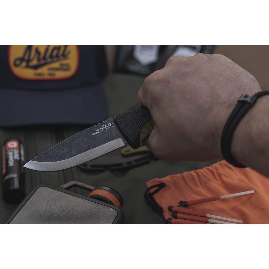 Aegis FX renomowanej firmy Sog to niezawodny nóż outdoorowy zaprojektowany do zadań na świeżym powietrzu. Ostrze o profilu Drop Point wykonano z niemieckiej stali nierdzewnej CRYO Krupp charakteryzującej się wysoką odpornością na korozję i niezrównaną wytrzymałością. Wykończenie jej na czarno metodą Stonewash pozostawia nieregularną powłokę dobrze maskującą rysy powstające podczas eksploatacji. Model posiada konstrukcję full tang, czyli z jednego kawałka stali, co dodatkowo zwiększa jego możliwości w terenie. Rękojeść z nylonu wzmocnionego włóknem szklanym pokryto antypoślizgową gumą. Jej ergonomiczne wyprofilowanie gwarantuje dobrą przyczepność do dłoni i dostarcza pewny chwyt nawet w niesprzyjających warunkach pogodowych. Na zakończeniu znajduje się otwór umożliwiający zamocowanie linki i stworzenie oplotu na nadgarstek. Całość dopełnia pochwa z tworzywa, kompatybilna z systemem Molle. Została również wyposażona w stalowy klips mocujący, dzięki któremu możemy wygodnie transportować nóż blisko ciała, jak i przy wyposażeniu. Aegis FX to kompaktowy model o żywej kolorystyce i funkcjonalnym designie, który szybko stanie się ulubieńcem i wiernym towarzyszem każdej wyprawy.
