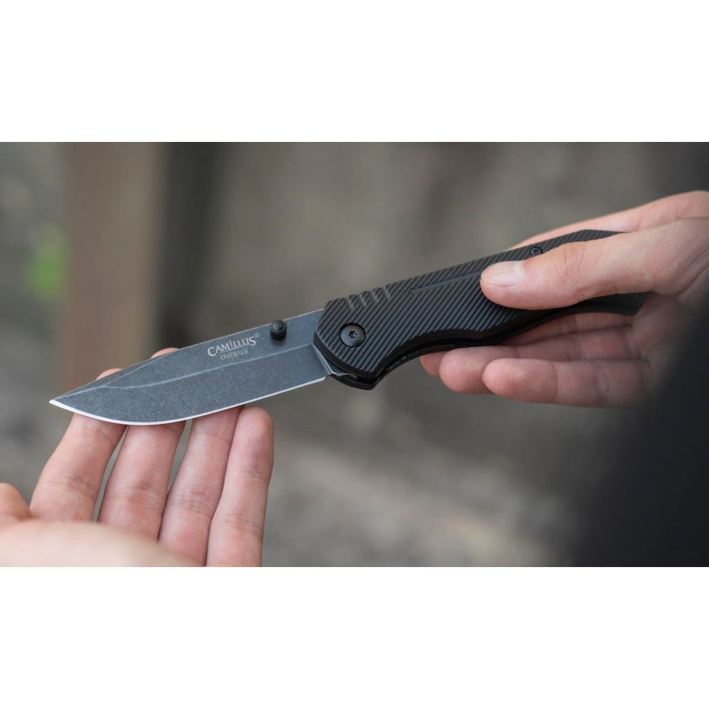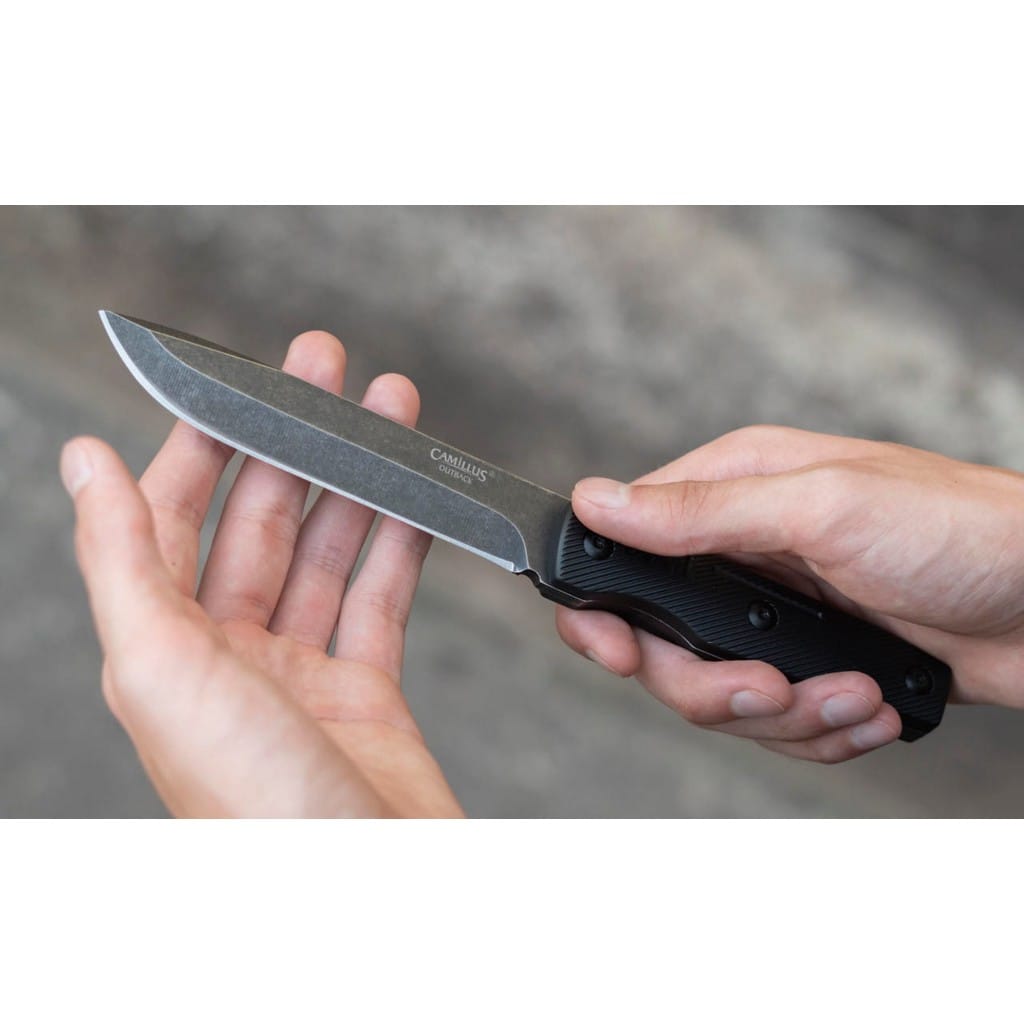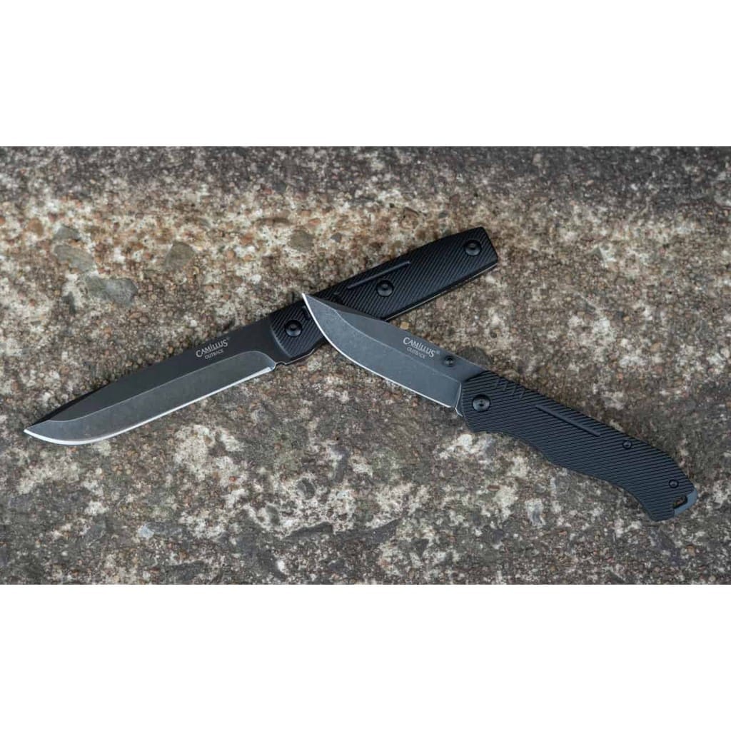 Outback Combo to wspaniały zestaw od firmy Camillus zawierający folder oraz nóż z ostrzem stałym do zadań na świeżym powietrzu. Do kompletu dołączono funkcjonalną pochwę z nylonu umożliwiającą wygodne transportowanie obu modeli na pasku spodni, blisko ciała. Produkty charakteryzują się zbliżonymi cechami, między innymi posiadają ostrza o uniwersalnym profilu Drop Point wykonane ze stali nierdzewnej 3Cr13. Głownie zostały wykończone na czarno metodą Stonewash pozostawiającą nieregularną powłokę dobrze maskującą rysy i zadrapania powstające podczas eksploatacji. Rękojeści zrobiono z formowanego tworzywa o antypoślizgowej fakturze zwiększającej przyczepność do dłoni użytkownika. Folder gwarantuje bezpieczną pracę, dzięki blokadzie Liner Lock, która czuwa przed przypadkowym złożeniem się klingi i skaleczeniem. Jego konstrukcję uzupełnia otwór na linkę oraz klips mocujący umożliwiający przenoszenie noża w kieszeni spodni. Outback Combo to świetny wybór do codziennego użytku, który doskonale sprawdzi się zarówno w domu, na kempingu, jak i na wyprawie survivalowej. Firma Camillus Cutlery od 1876 roku dostarcza niezawodne narzędzia, które wytrzymują próbę czasu. Jest to jeden z najstarszych amerykańskich producentów noży, cieszący się uznaniem na całym świecie.