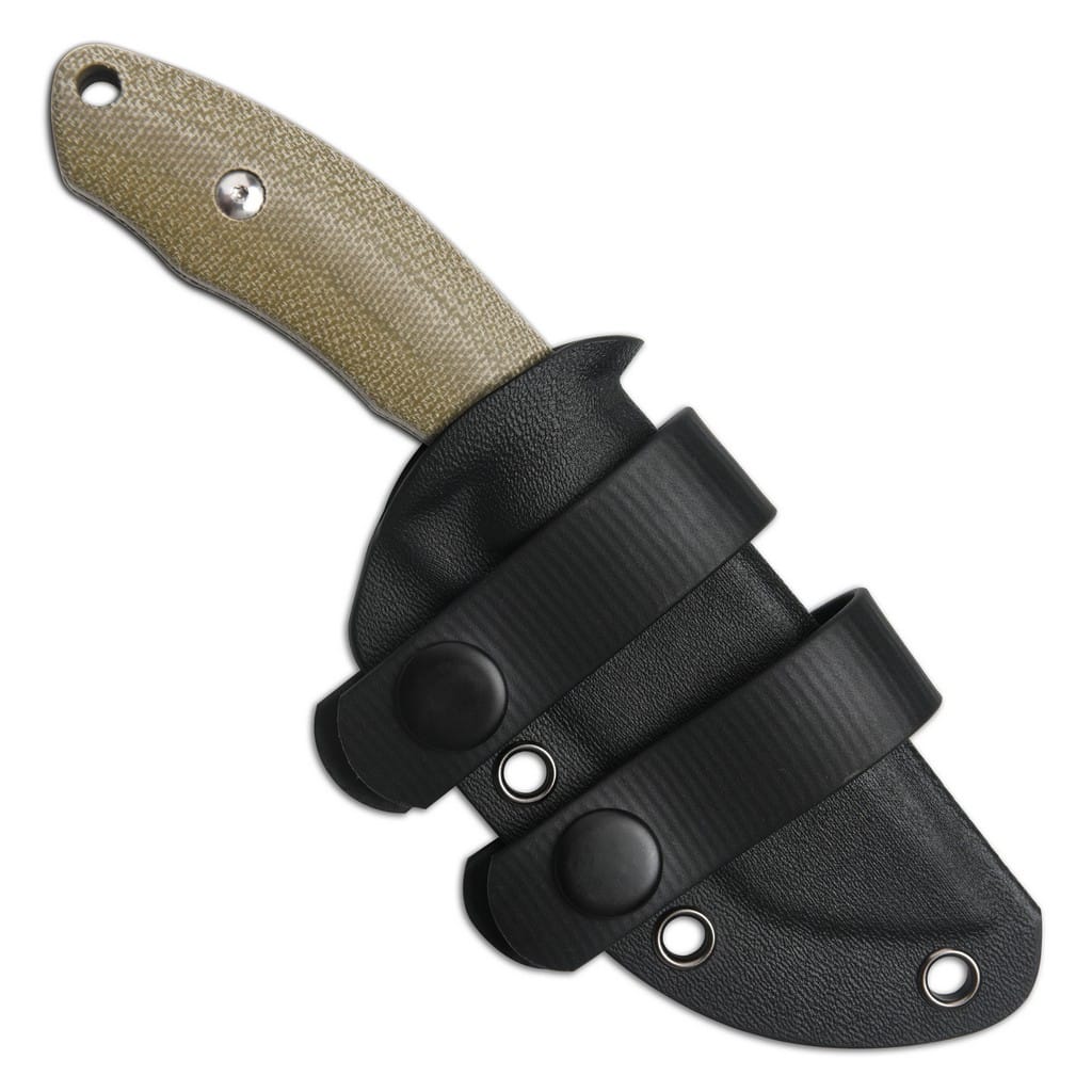 Mutt to kompaktowy nóż survivalowy zaprojektowany przez Johnathana Shawa dla firmy CJRB Cutlery. Model doskonale sprawdzi się do aktywności na świeżym powietrzu, idealny na kemping do przygotowywania jedzenia, a także do budowania schronienia, gdy znajdziemy się z dala od cywilizacji. Szerokie ostrze o agresywnym wyglądzie wykonano z nierdzewnej stali proszkowej AR-RPM9, produkowanej i zastrzeżonej przez Artisan Cutlery. Charakteryzuje się ona wysoką odpornością na korozję, długo utrzymuje ostrą krawędź tnącą oraz jest łatwa w utrzymaniu i w ostrzeniu. Wykończenie jej metodą Sand Polish pozostawia drobne ryski lekko matujące powierzchnię, dające efekt niedokładnego wypolerowania. Nóż odznacza się konstrukcją full tang, co zwiększa jego wytrzymałość podczas wymagających prac. Ergonomicznie wyprofilowane okładziny zrobiono z przyjemnej w dotyku Micarty. Na zakończeniu umieszczono otwór umożliwiający przełożenie breloka ozdobnego lub paracordu i stworzenie oplotu na nadgarstek. W zestawie znajduje się pochwa z kydexu wyposażona w troki mocujące, dzięki którym z łatwością doczepimy całość do paska spodni lub innego wyposażenia typu plecak, czy kamizelka. CJRB to przystępna cenowo marka własna firmy Artisan Cutlery, która narodziła się z pragnienia, aby jakość i wydajność oferowanych produktów była dostępna dla wszystkich, bez kompromisów w zakresie materiałów. Noże CJRB tworzone są przez zespół zajmujący się również linią premium, dlatego możemy spodziewać się kunsztu i tej samej dbałości o szczegóły, co w droższych egzemplarzach.