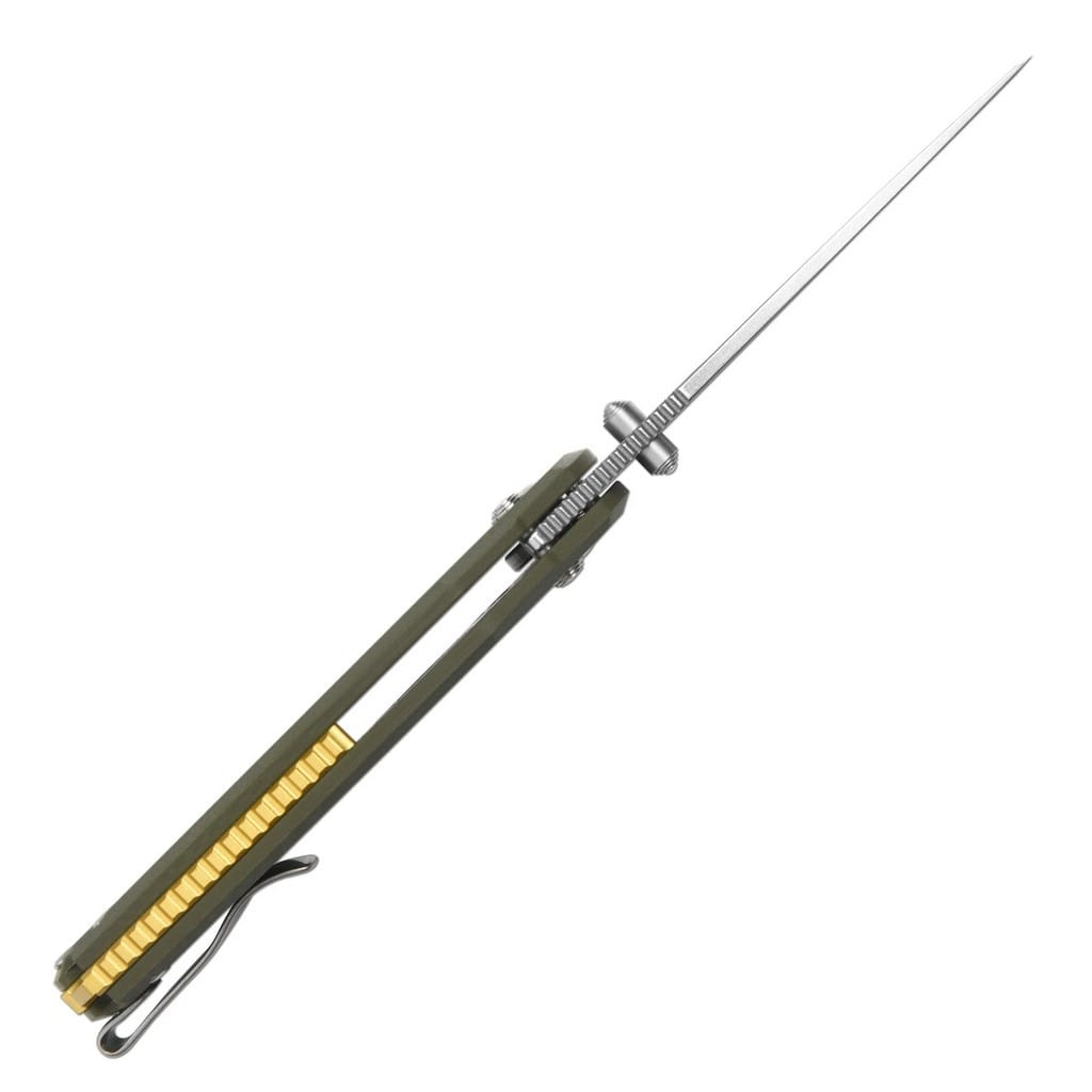 Nanner to folder EDC zaprojektowany dla firmy CJRB Cutlery przez Dusty'ego Rhodesa. Model posiada ostrze o profilu Trailing Point, z wyraźnym zakrzywieniem ku górze, wykonane z nierdzewnej stali proszkowej AR-RPM9, produkowanej i zastrzeżonej przez Artisan Cutlery. Charakteryzuje się ona wysoką odpornością na korozję, długo utrzymuje ostrą krawędź tnącą oraz jest łatwa w utrzymaniu i w ostrzeniu. Wykończenie jej metodą Stonewash pozostawia nieregularną powłokę dobrze maskującą rysy i zadrapania powstające podczas eksploatacji. Klingę osadzono na ceramicznych łożyskach kulkowych, która przy wykorzystaniu obustronnego kołka wysuwa się płynnie i gładko. Prosta obsługa jedną ręką zadowoli zarówno osoby prawo, jak i leworęczne. Bezpieczeństwo użytkowania zapewnia blokada Crossbar Lock czuwająca przed przypadkowym złożeniem się narzędzia podczas pracy. Karbowany grzbiet ostrza stanowi stabilne wsparcie dla kciuka, co pomaga przy zadaniach wymagających precyzji. Ergonomicznie wyprofilowana rękojeść z odpornego na warunki atmosferyczne materiału G10, o antypoślizgowej fakturze, gwarantuje pewny chwyt w każdej sytuacji. Na zakończeniu umieszczono otwór umożliwiający przełożenie breloka ozdobnego lub paracordu. Dodatkowo dwupozycyjny klips mocujący pozwala na przenoszenie foldera w kieszeni spodni lub przy wyposażeniu. W zestawie znajduje się ściereczka z mikrofibry oraz pokrowiec z miękkim wnętrzem i zamykaniem na suwak do wygodnego przechowywania i transportowania narzędzia. CJRB to przystępna cenowo marka własna firmy Artisan Cutlery, która narodziła się z pragnienia, aby jakość i wydajność oferowanych produktów była dostępna dla wszystkich, bez kompromisów w zakresie materiałów, czy konstrukcji. Noże CJRB tworzone są przez zespół zajmujący się również linią premium, dlatego możemy spodziewać się kunsztu i tej samej dbałości o szczegóły, co w droższych egzemplarzach.