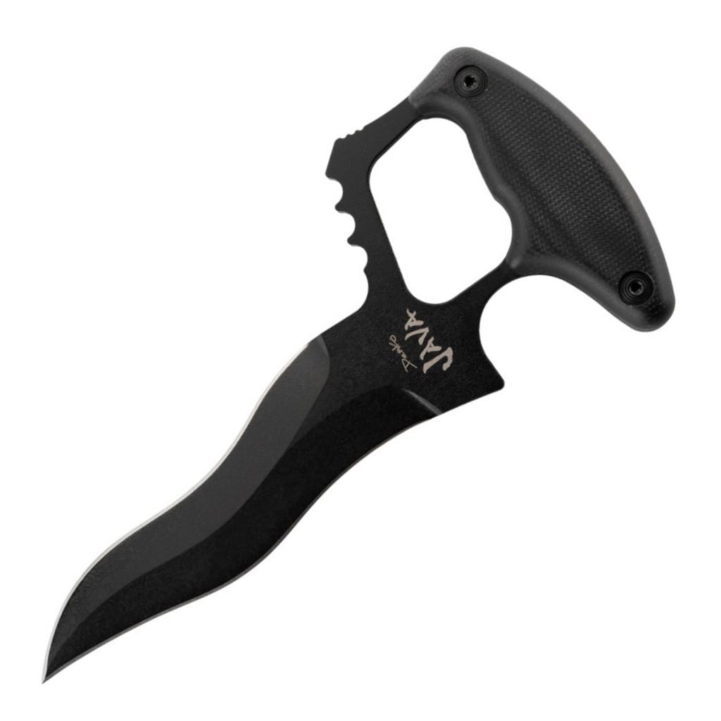 Firma Cold Steel wraz z Andrew Demko, dzięki sztyletowi Java po raz kolejny przenosi swoją taktyczną ofertę noży na wyższy poziom. Model posiada ostrze o wyjątkowym profilu Kris, które charakteryzuje się falistym kształtem i obustronnie naostrzoną krawędzią tnącą. Doskonale sprawdzi się w terenie jako skuteczne narzędzie do głębokiej penetracji i wydajnego cięcia. Głownia została wykonana ze stali węglowej SK-5 i pokryta proszkowo warstwą chroniącą przed korozją i negatywnym działaniem czynników zewnętrznych. Rękojeść zrobiono z wysokiej jakości czarnej Micarty o lnianej fakturze. Okładziny gwarantują komfortowy i pewny chwyt, a otwór na palce zwiększa kontrolę nad nożem. Ergonomiczna konstrukcja sprawia, że model mocno leży w dłoni pozwalając na precyzyjne i kontrolowane ruchy w każdej sytuacji. W zestawie znajduje się pochwa z twardego nylonu umożliwiająca bezpieczne transportowanie narzędzia na pasku spodni, blisko ciała. Liczne otwory na kaburze dają dodatkowe opcje mocowania całości do kamizelki lub innego wyposażenia.