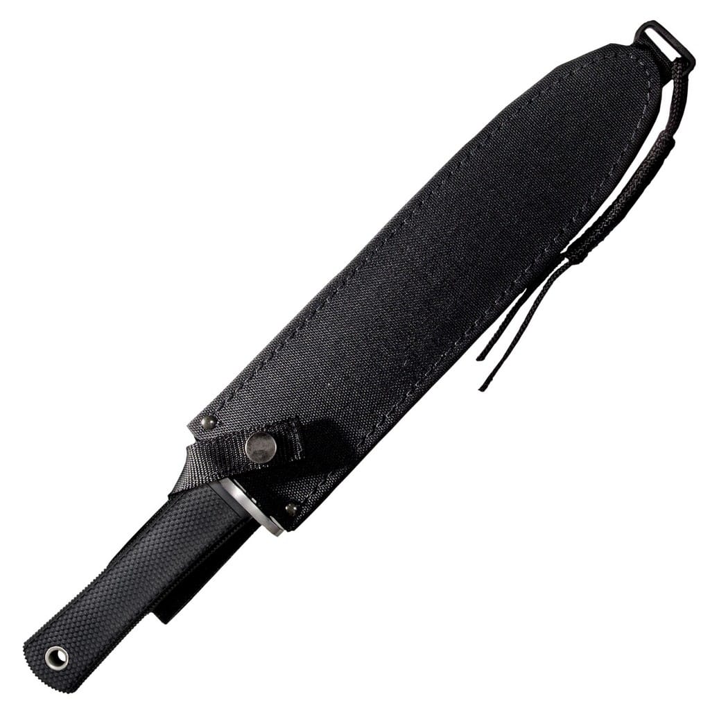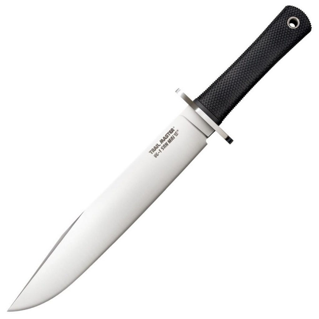 Trial Master amerykańskiej firmy Cold Steel to dzieło sztuki wśród noży stałych. Został wykonany z największą precyzją i z najlepszych dostępnych na rynku materiałów. Szerokie ostrze o profilu Clip Point z japońskiej stali VG-1 San Mai III ręcznie naostrzono oraz wypolerowano, przez co nóż stał się ostry niczym brzytwa. Całą konstrukcję zaprojektowano, tak aby wytrzymała najcięższe warunki pracy.  Rękojeść z tworzywa Kray-Ex o antypoślizgowej fakturze pewnie leży w dłoni podczas pchnięć czy zamachów. Dużych rozmiarów jelec zabezpiecza palce przed przypadkowym zsunięciem się na ostrze. W zestawie znajduje się pochwa z nylonu do wygodnego przenoszenia noża.