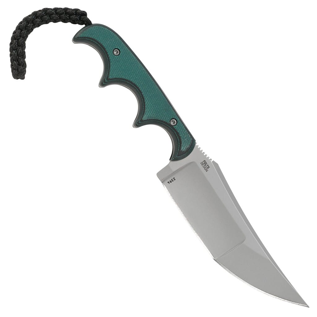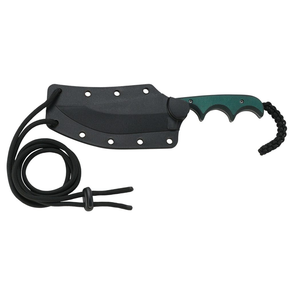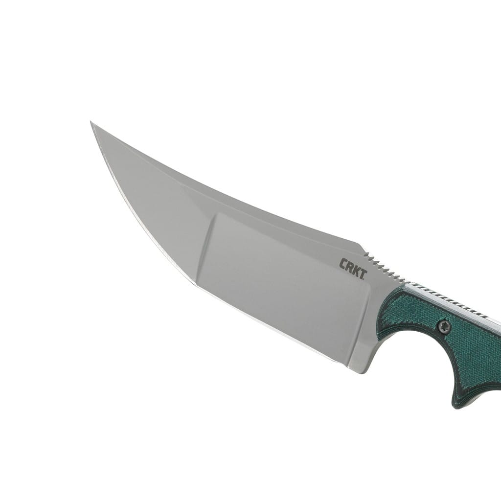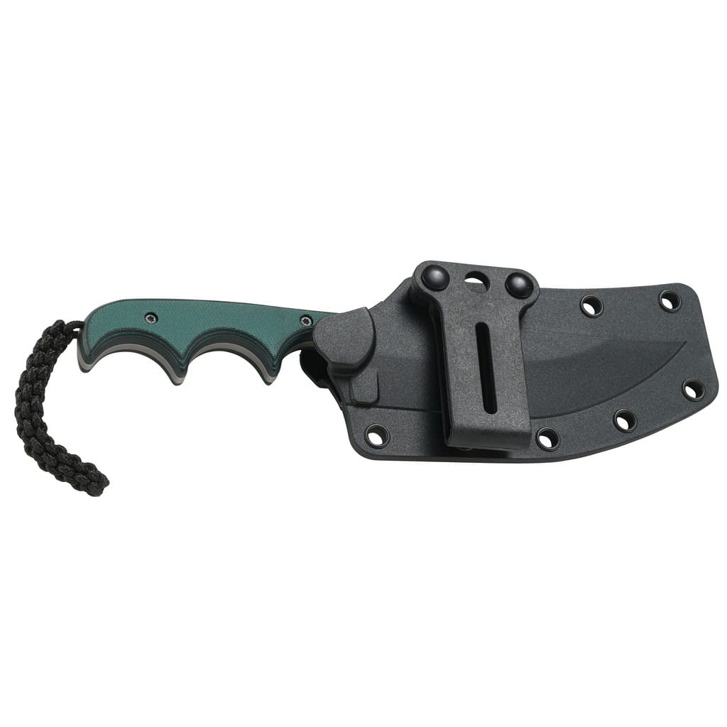 Minimalist firmy CRKT jak już sama nazwa wskazuje posiada minimalistyczną, prosta budowę, jednocześnie gwarantując maksymalną użyteczność. Model został stworzony przez Alana Foltsa z Florydy, projektanta z ponad 20 letnim doświadczeniem. Kompaktowe rozmiary noża oraz niewielka waga czynią z niego idealny wybór do codziennego noszenia. Ułatwia to znajdująca się w komplecie pochwa wykonana z tworzywa wyposażona w linkę z ogranicznikiem, dzięki której możemy wygodnie zawiesić produkt na karku. Dodatkowo producent dołączył klips pozwalający na przenoszenie zestawu przy pasie lub wyposażeniu. Wykonanie z jednego kawałka stali nierdzewnej 8Cr13MoV zwiększa wytrzymałość tej niedużej konstrukcji. Ostrze z charakterystycznym zakrzywieniem do góry powyżej linii grzbietu wykończono metodą beadblast pozostawiającą matową powłokę. Taki profil głowni świetnie poradzi sobie z większością zadań i sprosta każdemu wyzwaniu zarówno w terenie jak i w domu. Karbowany grzbiet głowni stanowi stabilne podparcie dla palca poprawiając bezpieczeństwo użytkowania. Okładziny rękojeści w zielonym kolorze z włókna nasyconego żywicą wyprofilowano pod zaciskającą się dłoń użytkownika, co zapewnia doskonałą kontrolę nad narzędziem i umożliwia precyzyjną pracę. Na zakończeniu chwytu zamocowano ozdobny brelok z nylonowej linki, który ułatwi wyciąganie noża z pochwy.