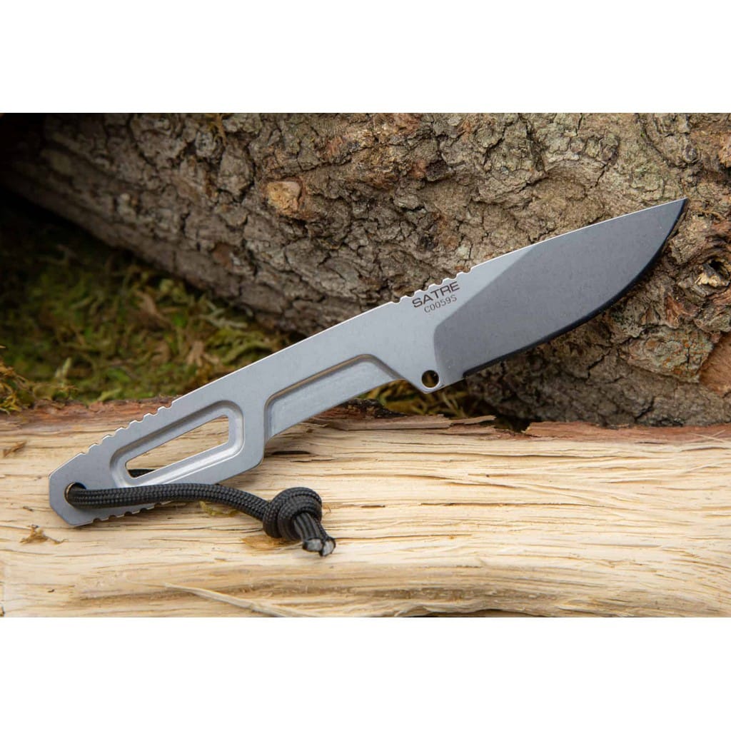 Sartre firmy Extrema Ratio to kompaktowy i lekki nóż z ostrzem stałym, który doskonale sprawdzi się do aktywności na świeżym powietrzu. Głownia o uniwersalnym profilu Drop Point świetnie poradzi sobie z różnymi zadaniami na kempingu, wyprawie survivalowej, czy podczas eksploracji leśnego terenu. Niezwykle wytrzymała konstrukcja full tang została wykonana z jednego kawałka austriackiej stali nierdzewnej Bohler N690 o twardości 58 HRC. Charakteryzuje się wysoką odpornością na korozję i długim trzymaniem ostrości. Wykończenie jej metodą Stonewash pozostawia nieregularną powłokę dobrze maskującą rysy i zadrapania powstające podczas eksploatacji. Karbowany grzbiet narzędzia stanowi stabilne podparcie dla palców, co jest niezwykle pomocne przy precyzyjnych zadaniach. Szkieletowa rękojeść posiada wyprofilowanie pod palec zwiększające kontrolę nad nożem. W celu poprawy komfortu chwytu możemy opleść ją dowolną linką lub materiałem, wzbogacając jednocześnie model o indywidualne cechy. Na zakończeniu umieszczono otwór z zamocowanym czarnym paracordem, ułatwiającym wyciąganie narzędzia. W zestawie znajduje się pochwa z kydexu wyposażona w linkę z ogranicznikiem, dzięki której możemy wygodnie przenosić produkt na szyi. Dodatkowo liczne otwory na jej krawędzi pozwalają na troczenie noża do wyposażenia. Extrema Ratio to włoska manufaktura z siedzibą w Prato, w regionie Toskanii. Firma od 1997 roku mistrzowsko projektuje niesamowicie mocne narzędzia taktycznie i myśliwskie, które nie mają sobie równych w przemyśle militarnym. Produkcja opiera się jedynie na wysokiej jakości materiałach i najnowocześniejszych technologiach. Co w połączeniu z tradycyjnym rzemiosłem i ręcznym wykończeniem każdego egzemplarza tworzy produkt spełniający najostrzejsze normy wojskowe.