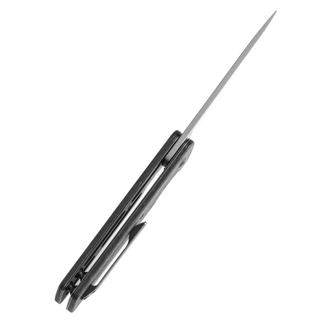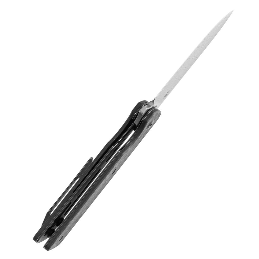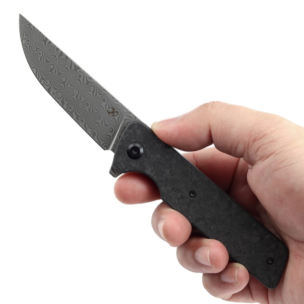 Dirk Pinkerton, posiadający 18 letnie doświadczenie w branży bezpieczeństwa, słynie z projektowania funkcjonalnych narzędzi do codziennego użytku. Anomaly stanowi interpretację japońskiego noża kwaiken. Model cechuje się prostą konstrukcją, a jednocześnie subtelną elegancją. Wysoka jakość materiałów spełni oczekiwania wymagających użytkowników, poszukujących niezawodnego foldera do pracy. Ostrze o uniwersalnym profilu Drop Point wykonano ze stali damasceńskiej o interesującym wzorze, bardzo dobrze ukrywającym wszelkie niedoskonałości powstające podczas eksploatacji. Klingę osadzono na ceramicznych łożyskach kulkowych, która przy wykorzystaniu flippera, pełniącego jednocześnie funkcję jelca, wysuwa się płynnie i gładko. Prosta obsługa jedną ręką zadowoli zarówno osoby prawo jak i leworęczne. Solidny i niezawodny mechanizm Frame Lock chroni przed przypadkowym złożeniem się ostrza, gdy jest w użyciu. Rękojeść z ultra lekkiego i wytrzymałego włókna węglowego, dzięki głębokiemu wyprofilowaniu pod palec dobrze układa się w dłoni, gwarantując pewny chwyt. Całość dopełnia klips mocujący, pozwalający na wygodne przenoszenie noża w kieszeni spodni lub przy wyposażeniu. Dodatkowo w zestawie znajduje się ściereczka z mikrofibry oraz gatunkowy pokrowiec transportowy, a wszystko zapakowano w czarne pudełko prezentowe. Kansept Knives to uosobienie najnowocześniejszych technologii i praktycznego wzornictwa. Jej motto brzmi “Nie tylko produkujemy noże, czynimy je lepszymi”, co doskonale oddaje charakter tej marki. Firma wyróżnia się z tłumu innowacyjnymi koncepcjami angażując do współpracy najlepszych projektantów z branży. Każdy element jest skrupulatnie obrabiany, za pomocą zaawansowanych maszyn lub ręcznie, tworząc znakomite połączenie kunsztu i estetyki.