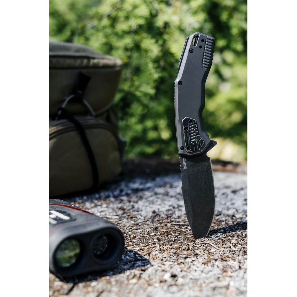 Cannonball firmy Kershaw to wyjątkowy nóż roboczy nadający się do wielu zadań EDC. Szerokie ostrze o profilu Drop Point wykonano ze stali narzędziowej D2, która długo utrzymuje właściwą ostrość i jest bardzo wytrzymała. Wykończono ją metodą Blackwash dobrze ukrywającą zadrapania powstająca podczas eksploatacji. Wspomaganie wysuwania ostrza SpeedSafe płynnie i szybko wysuwa głownię przy wykorzystaniu jednej ręki i dużego flippera pełniącego jednocześnie funkcję jelca zabezpieczającego dłoń przed jej zsunięciem się na krawędź tnącą. Bezpieczeństwo pracy zapewnia solidna i mocna blokada Frame Lock, a także karbowany grzbiet narzędzia stanowiący stabilne podparcie dla palców. Świetnie wyprofilowana rękojeść ze stali nierdzewnej pokrytej szarą powłoką PVD gwarantuje dobrą ergonomię chwytu nawet przy większych dłoniach użytkownika. Na jej zakończeniu znajduje się duży otwór na linkę oraz dwupozycyjny klips mocujący do wygodnego przenoszenia foldera w kieszeni lub przy wyposażeniu.