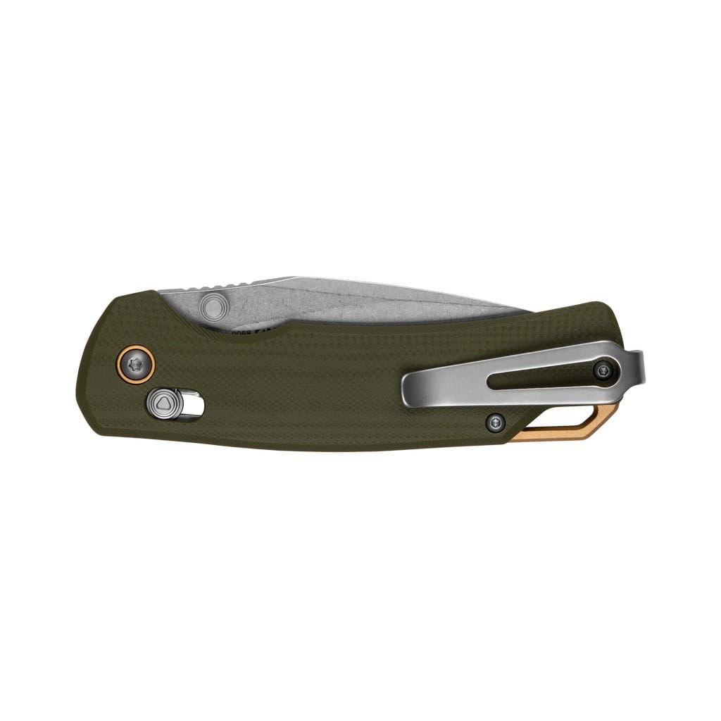 Proximal firmy Kershaw to folder zaprojektowany do codziennego noszenia, oferujący wysoki poziom precyzji i kontroli. Szerokie ostrze o profilu Drop Point zostało wykonane z wysokiej jakości stali narzędziowej D2 o doskonałej wydajności cięcia, twardej i odpornej na zużycie. Wykończenie głowni metodą Stonewash pozostawia nieregularną powłokę dobrze maskującą rysy i zadrapania powstające podczas eksploatacji. Szybkie i płynne rozłożenie narzędzia jedną ręką, przy wykorzystaniu obustronnego kołka, umożliwia łożyskowy systemem KVT (Kershaw Velocity Technology). Bezpieczeństwo użytkowania zapewnia blokada DuraLock, a karbowany grzbiet klingi daje stabilne wsparcie dla kciuka, co pomaga przy precyzyjnych zadaniach. Oliwkowa rękojeść z wyprofilowaniem pod palec, zrobiona z odpornego na warunki atmosferyczne materiału G10, gwarantuje pewny chwyt w każdej sytuacji. Złote akcenty z aluminium w postaci pierścienia wokół pivota oraz backspacera dodają charakteru konstrukcji. Na zakończeniu umieszczono sporych rozmiarów miejsce na linkę umożliwiające przełożenie paracordu lub breloka ozdobnego. Całość dopełnia dwupozycyjny klips mocujący do głębokiego przenoszenia noża w kieszeni spodni. Proximal to świetna propozycja foldera EDC dla miłośników outdooru.
