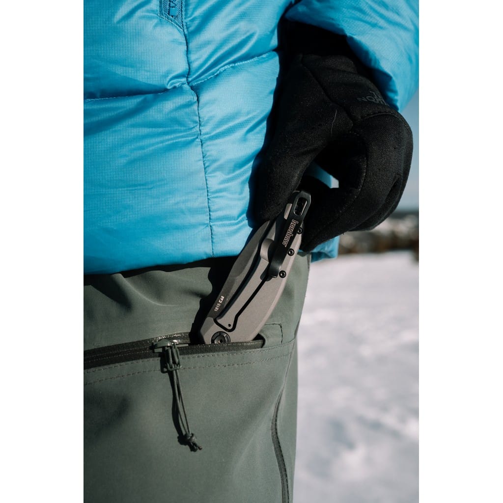 Sanctum amerykańskiej firmy Kershaw to stylowy i bardzo praktyczny nóż do codziennego noszenia. Klinga o profilu Wharncliffe została wykonana ze stali nierdzewnej 8Cr13MoV, która jest łatwa w ostrzeniu. Wykończenie jej na czarno metodą Blackwash pozostawia nieregularną powłokę dobrze maskującą rysy powstające podczas eksploatacji. Do szybkiego rozłożenia narzędzia służy flipper, pełniący jednocześnie funkcję jelca, a wspomaganie wysuwania ostrza, w postaci wewnętrznej sprężyny, sprawia że model jest gotowy do działania w ułamku sekundy. Bezpieczeństwo użytkowania zapewnia solidna i niezawodna blokada Frame Lock oraz karbowany grzbiet głowni dający stabilne wsparcie dla kciuka, co jest bardzo użyteczne przy precyzyjnych zadaniach. Gładka rękojeść ze stali nierdzewnej posiada wyfrezowane krawędzie i ergonomiczny kształt, dzięki czemu chwyt jest pewny i komfortowy. Dodatkowo pokryto ja szarą powłoką PVD chroniącą przed negatywnym działaniem czynników zewnętrznych. Na zakończeniu znajduje się sporych rozmiarów otwór na linkę, umożliwiający przełożenie paracordu lub breloka ozdobnego. Konstrukcję uzupełnia dwupozycyjny klips mocujący do głębokiego przenoszenia foldera w kieszeni spodni. Sanctum to doskonały wybór na każdą sytuację.