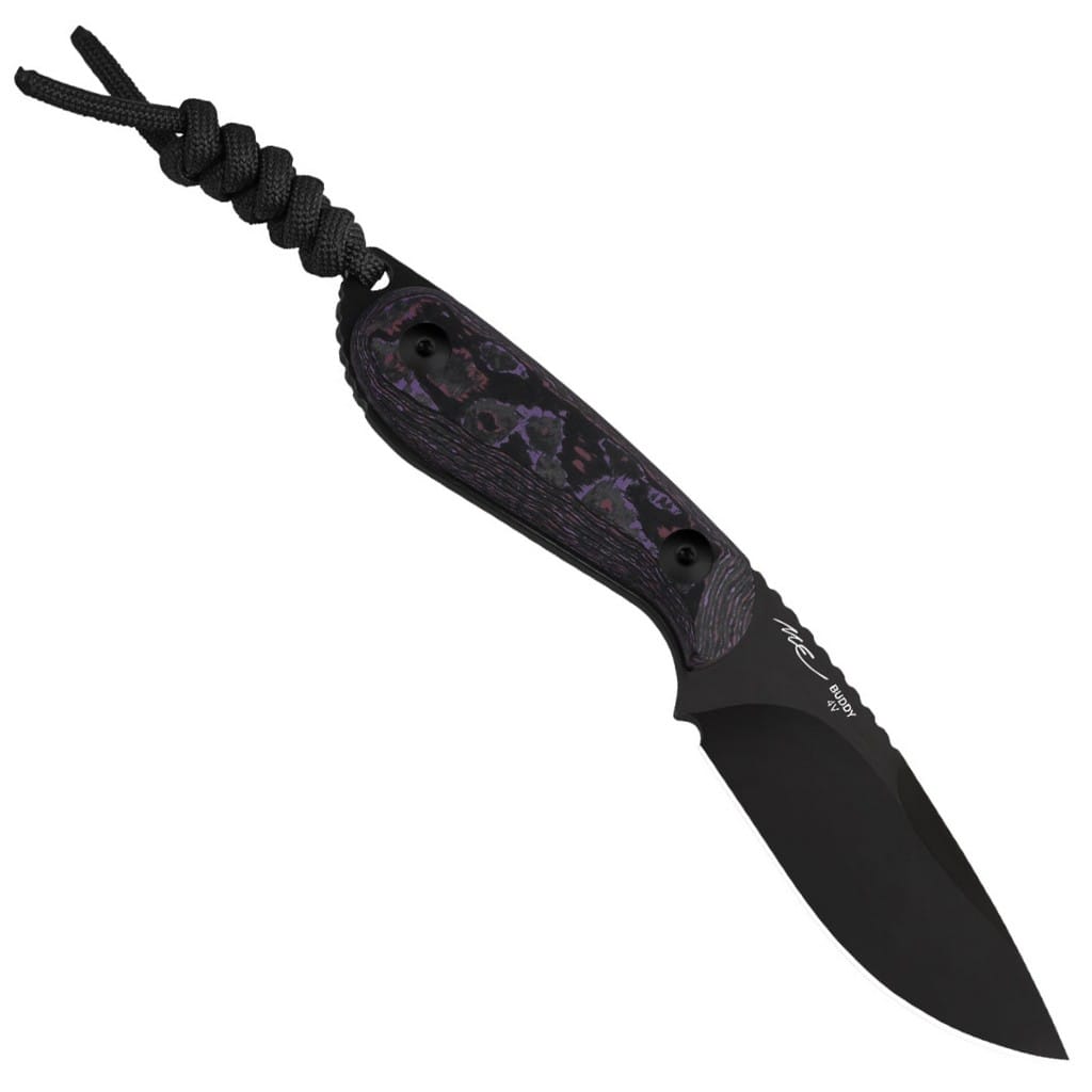 Kompaktowy, lekki i piękny - taki właśnie jest nóż z ostrzem stałym zaprojektowany dla firmy Kizer przez Maksima Epifantsev. Model charakteryzuje się konstrukcją full tang, co dodatkowo zwiększa jego wytrzymałość podczas pracy. Buddy idealnie sprawdzi się do lżejszych aktywności na świeżym powietrzu, gwarantując satysfakcjonujące użytkowanie. Ostrze o uniwersalnym profilu Drop Point zostało wykonane z amerykańskiej stali proszkowej CPM 4V odpornej na pękanie i wykruszenia. W celu zabezpieczenia głowni przed negatywnym działaniem czynników zewnętrznych pokryto ją czarną i wypolerowaną powłoką DLC (Diamond Like Carbon) o twardości zbliżonej do diamentu. Mocno karbowany grzbiet klingi stanowi stabilne wsparcie dla kciuka, co pomaga przy precyzyjnych zadaniach. Rękojeść zrobiono z unikalnego materiału FAT Carbon, należącego do klasy premium, cechującego się niepowtarzalnym i eleganckim wyglądem. Na zakończeniu umieszczono otwór z zamocowanym brelokiem z paracordu, ułatwiającym chwytanie narzędzia. W zestawie znajduje się pochwa z kydexu wraz z funkcjonalnym mocowaniem typu Tek-Lok, dzięki któremu możemy bezpiecznie transportować nóż na pasku spodni, blisko ciała. Przelotki na krawędziach kabury oferują dodatkowe opcje montażu produktu do wyposażenia. Do kompletu dołączono również ściereczkę z mikrofibry, a całość zapakowano w czarne pudełko prezentowe. Firma Kizer współpracuje z projektantami z całego świata i skutecznie przekształca koncepcje w rzeczywistość. Wykorzystuje materiały pochodzące z USA i Japonii, aby dopracowanie każdego egzemplarza było na najwyższym poziomie. Posiada centrum badawczo-rozwojowe, a także linię przemysłową z nowoczesnymi i precyzyjnymi maszynami, które dostarczają funkcjonalność i niezawodność. Nie uznaje dróg na skróty, żadnych kompromisów, a każdy etap produkcji realizuje we właściwy i efektywny sposób.