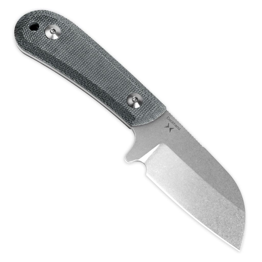 Deckhand firmy Kizer to kompaktowy nóż z ostrzem stałym o prostej budowie, zapewniającej wygodny chwyt i funkcjonalność użytkowania. Głownia o profilu Sheepsfoot została wykonana z wysokiej jakości stali narzędziowej D2 o doskonałej wydajności cięcia, twardej i odpornej na zużycie. Taki kształt ostrza świetnie sprawdzi się nie tylko do zadań EDC, ale również do przygotowywania posiłków w terenie i innych kempingowych czynności. Klingę wykończono metodą Stonewash pozostawiającą nieregularną powłokę dobrze maskującą rysy powstające podczas eksploatacji. Klingę pokryto czarną powłoką zabezpieczającą przed korozją i odblaskami. Karbowany grzbiet ostrza stanowi stabilne podparcie dla kciuka, co ułatwia realizację zadań wymagających precyzji. Rękojeść to połączenie materiału G10 od wewnętrznej strony, z zewnętrzną warstwą Micarty o przyjemnej dla dłoni fakturze. Na zakończeniu umieszczono otwór umożliwiający przełożenie breloka ozdobnego lub paracordu i stworzenie oplotu na nadgarstek. W zestawie znajduje się pochwa z kydexu wyposażona w metalowy klips, dzięki czemu możemy transportować nóż bezpiecznie blisko ciała. Do kompletu dołączono również ściereczkę z mikrofibry i kawałek linki mocującej, a całość zapakowano w czarne pudełko prezentowe. Firma Kizer współpracuje z projektantami z całego świata i skutecznie przekształca koncepcje w rzeczywistość. Wykorzystuje materiały pochodzące z USA i Japonii, aby dopasowanie i wykończenie każdego egzemplarza było na najwyższym poziomie. Posiada centrum badawczo-rozwojowe, a także linię przemysłową z nowoczesnymi i precyzyjnymi maszynami, które dostarczają wydajność i niezawodność. Nie uznaje dróg na skróty, żadnych kompromisów, a każdy etap produkcji wykonuje we właściwy i efektywny sposób.