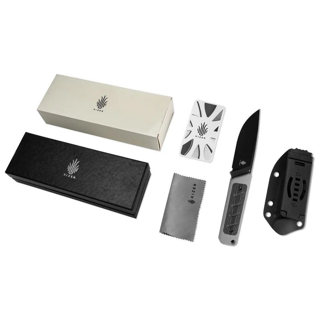 Smolt firmy Kizer to kompaktowy i praktyczny nóż z ostrzem stałym, zaprojektowany przez Jonathan Styles. Model doskonale sprawdzi się w codziennym użytkowaniu, a także jako narzędzie survivalowe do niewymagających aktywności na świeżym powietrzu, czy na kempingu. Głownia o uniwersalnym profilu Drop Point została wykonana z amerykańskiej stali proszkowej CPM 3V charakteryzującej się niezwykłą twardością i odpornością na ścieranie. W celu zwiększenia ochrony przed czynnikami zewnętrznymi pokryto ją czarną, matową powłoką. Karbowany grzbiet ostrza stanowi stabilne podparcie dla kciuka, co ułatwia realizację zadań wymagających większej precyzji. Rękojeść to połączenie dwóch materiałów, wytrzymałego tworzywa G10 z przyjemną w dotyku Micartą, gwarantującą komfort pracy i dobrą przyczepność do dłoni. Na zakończeniu umieszczono otwór umożliwiający przełożenie breloka ozdobnego lub paracordu i stworzenie oplotu na nadgarstek. W zestawie znajduje się pochwa z kydexu wraz z funkcjonalnym mocowaniem Tek-Lok, dzięki któremu możemy transportować nóż bezpiecznie na pasku spodni, blisko ciała. Do kompletu dołączono również ściereczkę z mikrofibry, a całość zapakowano w czarne pudełko prezentowe. Firma Kizer współpracuje z projektantami z całego świata i skutecznie przekształca koncepcje w rzeczywistość. Wykorzystuje komponenty pochodzące z USA i Japonii, aby dopasowanie i wykończenie każdego egzemplarza było na najwyższym poziomie. Posiada centrum badawczo-rozwojowe, a także linię przemysłową z nowoczesnymi i precyzyjnymi maszynami, które dostarczają wydajność i niezawodność. Nie uznaje dróg na skróty, żadnych kompromisów, a każdy etap produkcji wykonuje we właściwy i efektywny sposób.