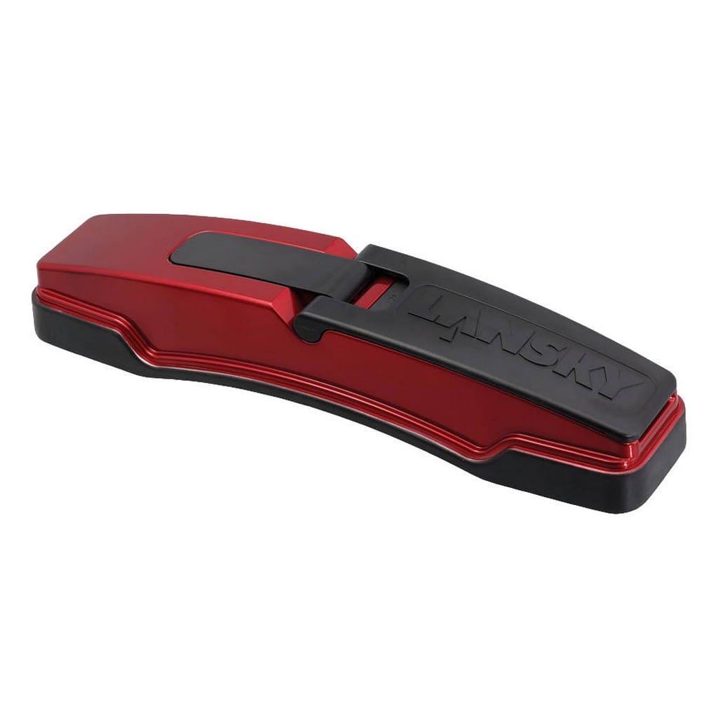 Masters Edge Diamond to kuchenny system ostrzący zaprojektowany przez renomowaną firmy Lansky dla osób poszukujących szybkich i skutecznych rozwiązań. Z jego pomocą profesjonalnie naostrzymy zarówno noże z ostrzem gładkim, jak i ząbkowanym. Model składa się z dwóch par prętów diamentowych o różnych gradacjach, które umieszczone w podstawie tworzą kształt litery V, co ułatwia pracę. Do wyboru mamy trzy różne kąty 17°, 20°, 25° w zależności od potrzeb i rodzaju noża, który planujemy ostrzyć. Użytkownik dysponuje gradacją Medium (400), dzięki której szybko przywróci ostrość stępionym krawędziom tnącym oraz gradacją Fine (600) do wypolerowania ostrza. Dodatkowo trójkątny pręt diamentowy zadba o ostrza ząbkowane, haczyki wędkarskie lub inne elementy o zakrzywionym kształcie. Podstawę wzbogacono o gumową warstwę o właściwościach antypoślizgowych, dlatego system pozostanie bezpiecznie na swoim miejscu podczas ostrzenia, bez kłopotliwego przemieszczania się, co utrudniałoby wykonanie zadania. Osłona na dłonie chroni palce przed ich skaleczeniem, w sytuacji, gdyby nóż nieoczekiwanie zsunął się z kamienia. Wszystkie pręty schowamy w dole podstawy, w miejscu do tego zaprojektowanym, dzięki czemu możemy produkt bez problemu włożyć do szuflady lub spakować do plecaka, jeśli planujemy zabrać go w teren. Ostrzałka MEDGE1D to niezastąpione narzędzie w każdej kuchni, z której pomocą każdy rodzaj noża znów będzie pracował na właściwych obrotach.