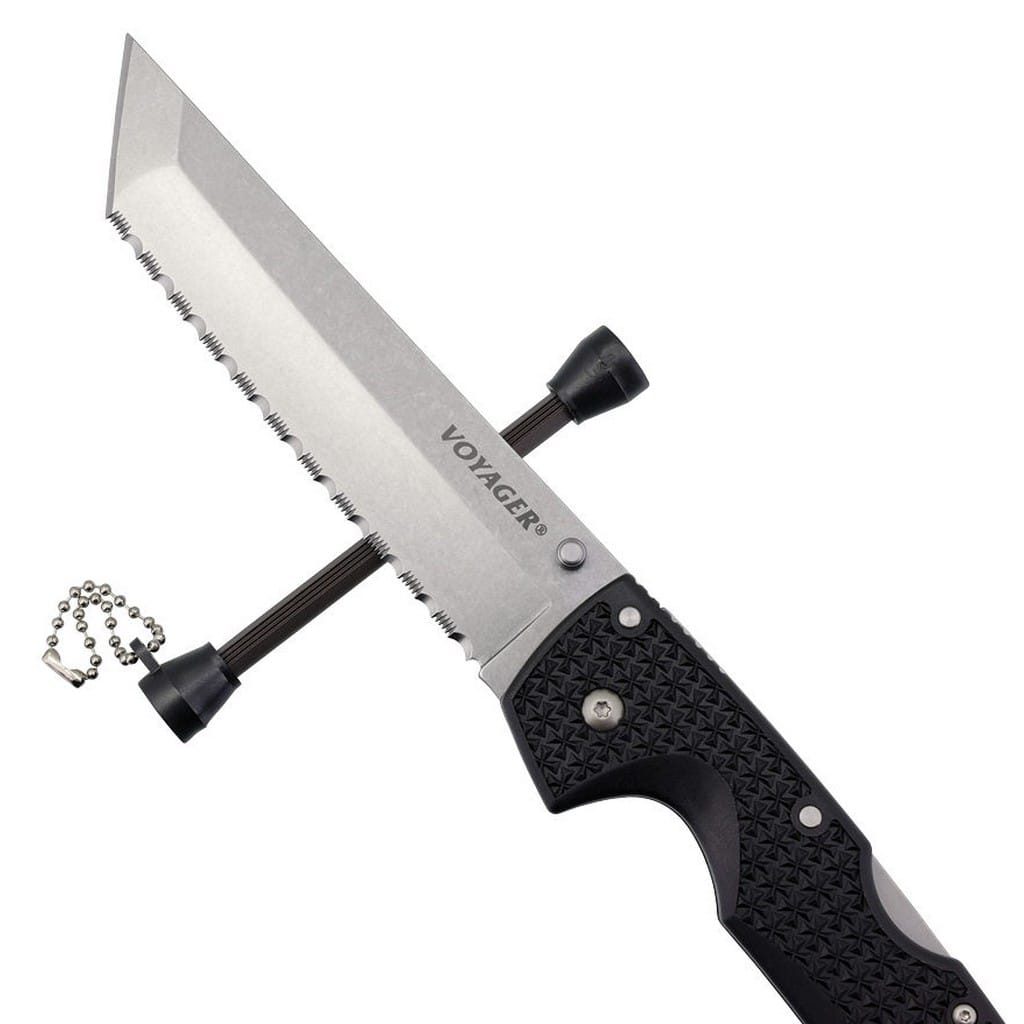 Poręczna, niewielka, opatentowana ostrzałka firmy Lansky zaprojektowana z myślą o nożach ząbkowanych z głownią stałą oraz folderach firmy Cold Steel. Specjalne wypusty idealnie pasują do żłobień w ostrzu. Końcówki ostrzałki posiadają osłony w jednej z nich znajduje się łańcuszek dający możliwość zamocowania go do kluczy czy organizera, a niewielkie rozmiary sprawiają że świetnie sprawdza się w domu jak i w terenie.