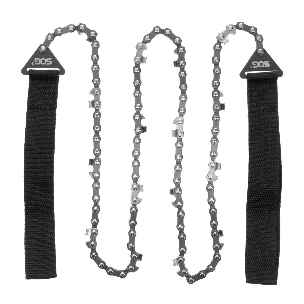 Piła łańcuchowa z dwukierunkowymi zębami tnącymi zaprojektowana przez firmę SOG, jako obowiązkowe wyposażenie każdego zestawu przetrwania. Doskonale sprawdzi się na kempingu, w ogrodzie oraz do wszelkich prac na świeżym powietrzu, gdy pojawi się na drodze drewniana przeszkoda. Narzędzie świetnie nadaje się do usuwania obumarłych drzew lub oczyszczania terenu po burzy. Piła posiada wytrzymałe, nylonowe uchwyty, które zapewniają komfort podczas użytkowania. W zestawie znajduje się również kompaktowy pokrowiec do bezpiecznego transportowania narzędzia.