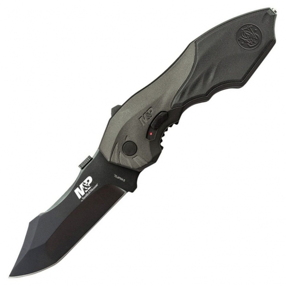Nóż taktyczny o drapieżnym wyglądzie należący do serii Military & Police znanego producenta broni palnej, firmy Smith & Wesson. Model stanowi doskonałą propozycję dla pracowników mundurowych oraz wszystkich miłośników militariów poszukujących narzędzia do codziennej pracy w domu i w terenie. Uniwersalne ostrze o profilu Clip Point zostało wykonane ze stali nierdzewnej 4034 pokrytej czarną oksydą chroniącą przed korozją i odblaskami. Rozłożenie foldera jedną ręką umożliwia dysk oraz dźwignia przypominająca celownik, zaś wspomaganie M.A.G.I.C. sprawia, że folder jest gotowy do działania w ułamku sekundy. Bezpieczeństwo pracy zapewnia klasyczny mechanizm Liner Lock wspierany przez dodatkowe zabezpieczenie w postaci suwaka na rękojeści. Aluminiowe okładziny chwytu dzięki specjalnie zaprojektowanej, nierównej powierzchni gwarantują pewny chwyt nawet, gdy dłoń jest mokra lub w rękawicy. Na zakończeniu znajduje się zbijak do szyb, który w sytuacji awaryjnej pomoże wyjść nam z opresji. Konstrukcję uzupełnia klips mocujący do wygodnego przenoszenia noża w kieszeni spodni lub przy wyposażeniu.