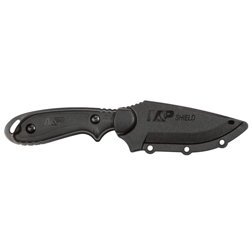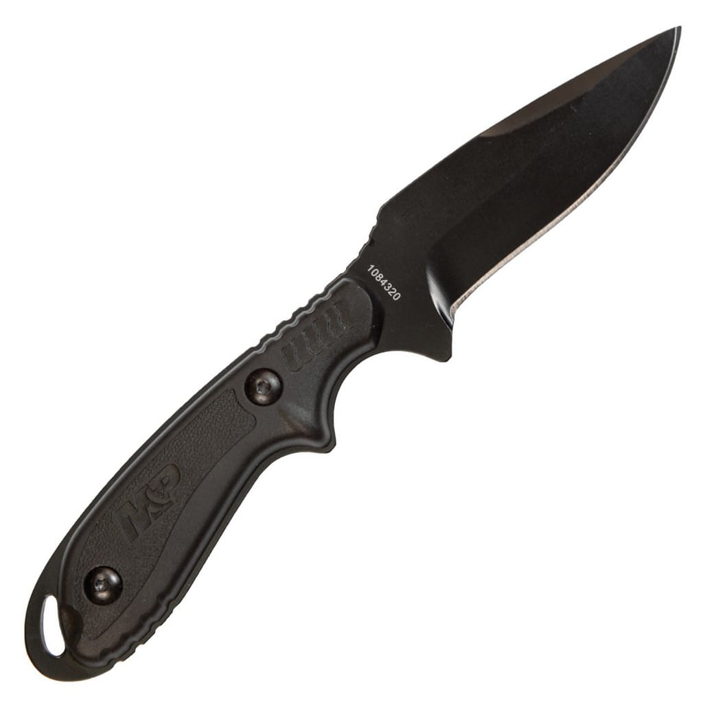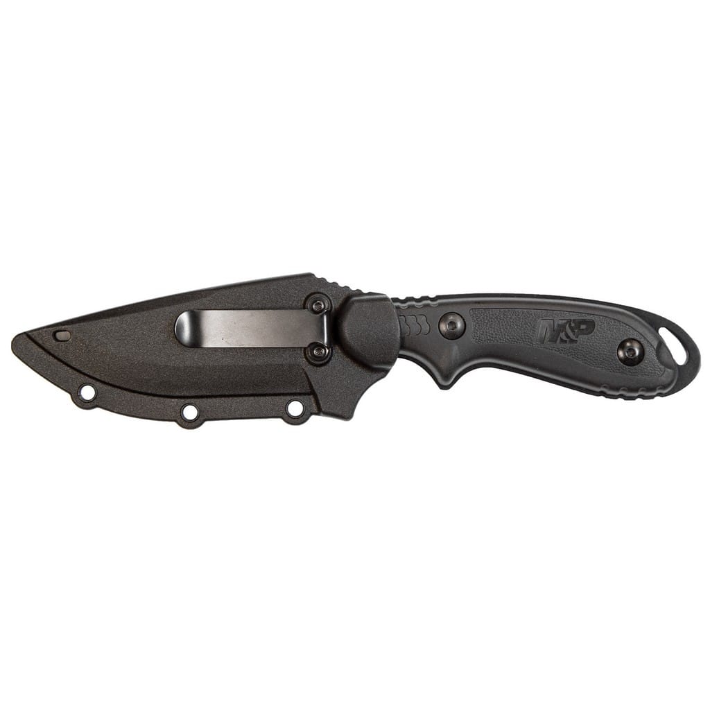 Taktyczny nóż z głownią stałą z serii Military & Police firmy Smith & Wesson, która jest rozpoznawalnym na całym świecie producentem broni palnej. Konstrukcja została zrobiona z jednego kawałka stali nierdzewnej 8Cr13MoV, co zwiększa wytrzymałość i możliwości narzędzia. Ostrze o profilu Drop Point w celu ochrony przed korozją i odblaskami pokryto czarną oksydą. Wyprofilowany jelec sprzyja bezpieczeństwu pracy, a karbowany grzbiet klingi daje stabilne wsparcie dla kciuka, co ułatwia wykonywanie zadań wymagających większej precyzji. Okładziny chwytu z nylonu wzmocnionego włóknem szklanym, dzięki antypoślizgowej fakturze dobrze leżą w dłoni gwarantując dobrą przyczepność i komfort użytkowania. Na zakończeniu umieszczono otwór na linkę umożliwiający przełożenie paracordu lub breloka ozdobnego. W zestawie znajduje się pochwa z formowanego tworzywa, wyposażona w klips mocujący, dzięki któremu możemy przenosić nóż blisko ciała, na pasku spodni. Otwory na brzegach kabury oferują dodatkowe opcje transportowania narzędzia, poprzez mocowanie go do wyposażenia typu kamizelka lub plecak.