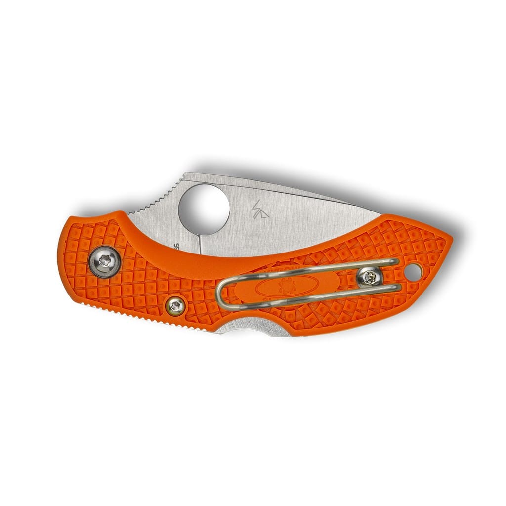 Co czyni model Dragonfly bestsellerem? Przede wszystkim średniej wielkości ostrze oraz ergonomiczna rękojeść z wcięcie na palec wskazujący. Doskonale dobrany stosunek wagowy i wielkość chwytu sprawiają, że trzymając go mamy wrażenie jakbyśmy mieli w ręku znacznie większy model. Ostrze o pełnym szlifie płaskim wykonano z japońskiej stali nierdzewnej VG-10 o bardzo dobrych parametrach użytkowych. Szybkie rozłożenie głowni za pomocą jednej dłoni umożliwia duży otwór na kciuk. Patent Spyderco pozwala bez problemu otworzyć folder zarówno prawą jak i lewą ręką. Rękojeść z nylonu wzmocnionego włóknem szklanym posiada specjalną strukturę Bi-Directional, która poprawia chwyt i zwiększa przyczepność do dłoni. Jej jaskrawy pomarańczowy kolor sprawia, że nóż łatwiej jest dostrzec i odnaleźć nawet w warunkach słabej widoczności. Blokada to klasyczny Back Lock z wycięciem Boye Dent, które zapobiega przypadkowemu zwolnieniu zabezpieczenia. Całość uzupełnia otwór na linkę oraz dwupozycyjny klips mocujący do wygodnego przenoszenia narzędzia w kieszeni. Dragonfly 2 to niewielkich rozmiarów folder, który idealnie sprawdzi się jako model EDC.
