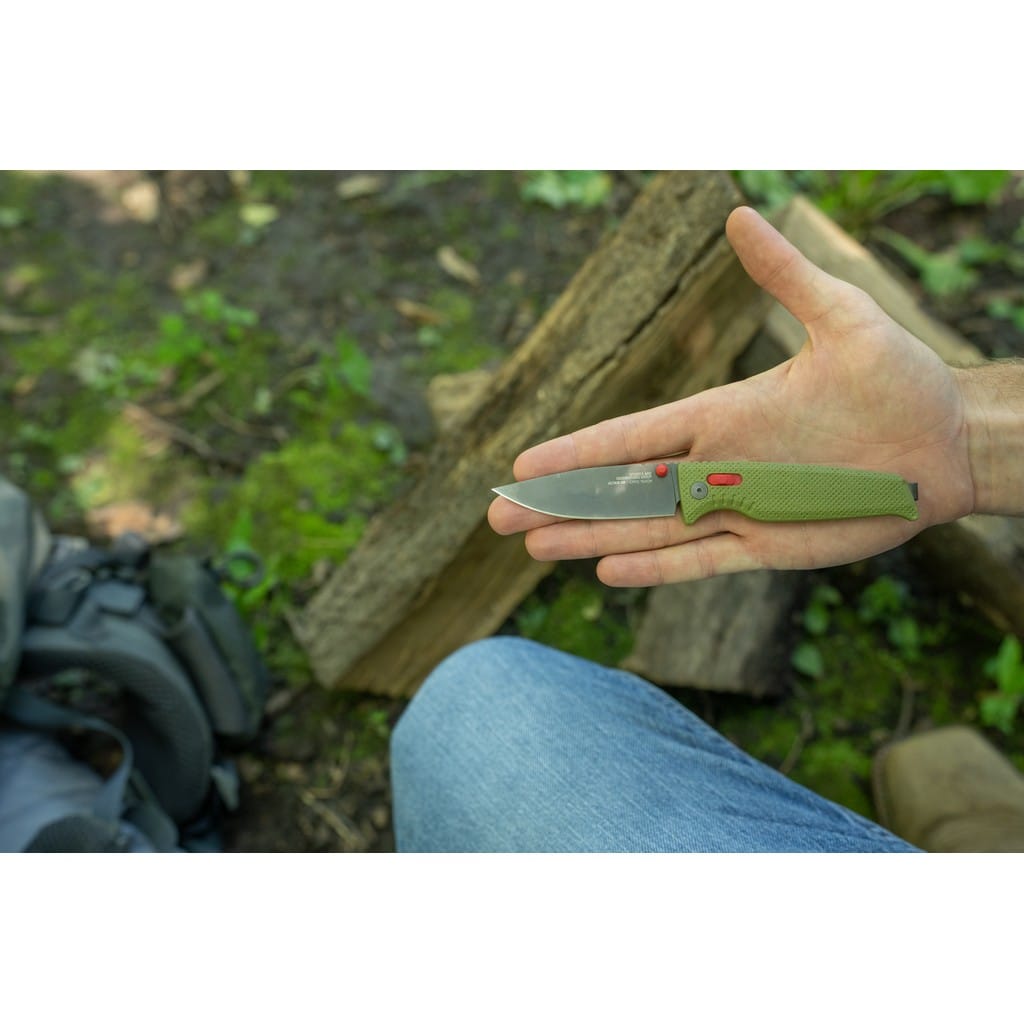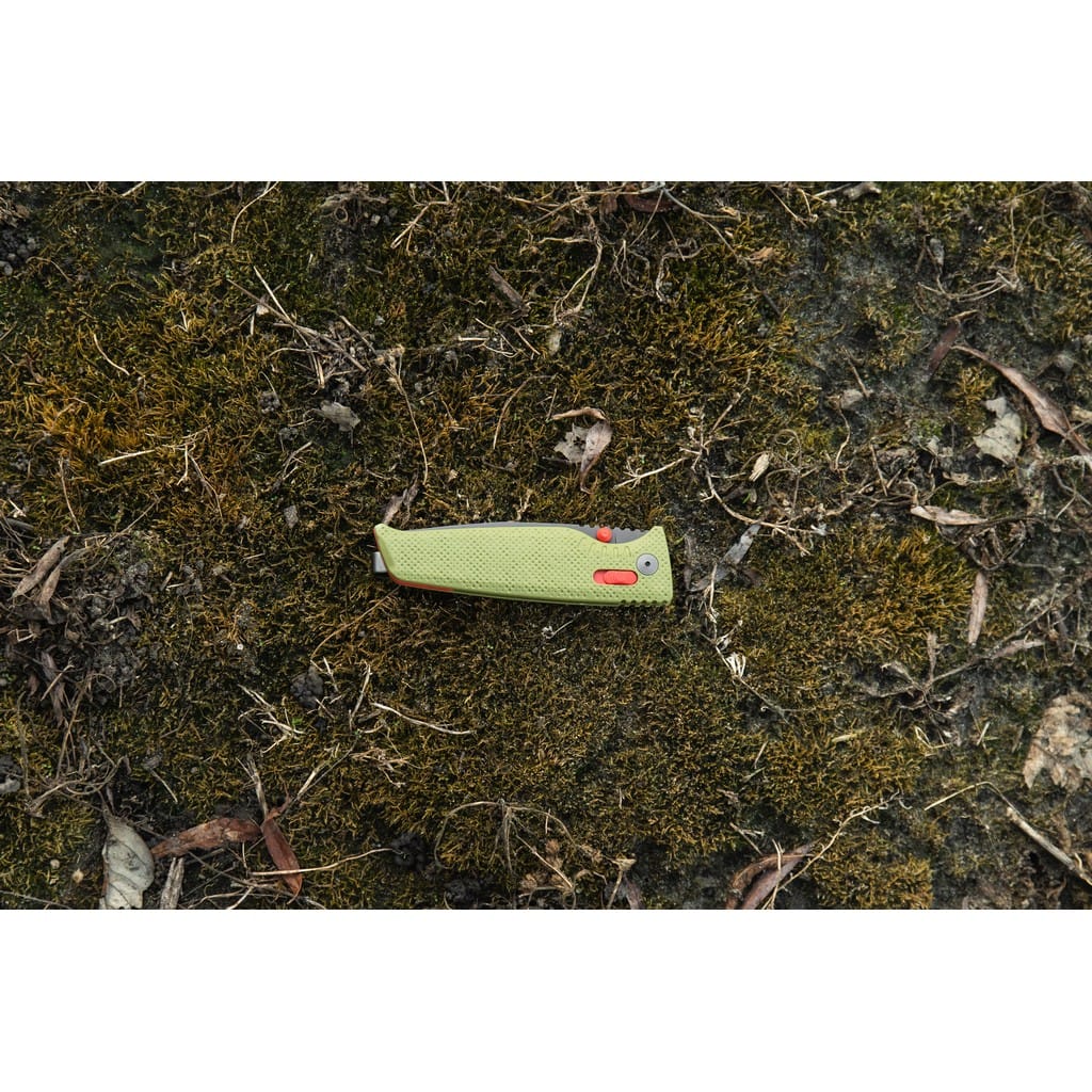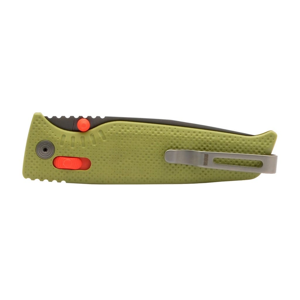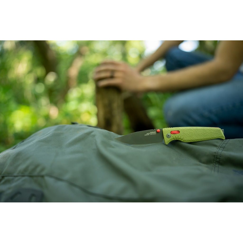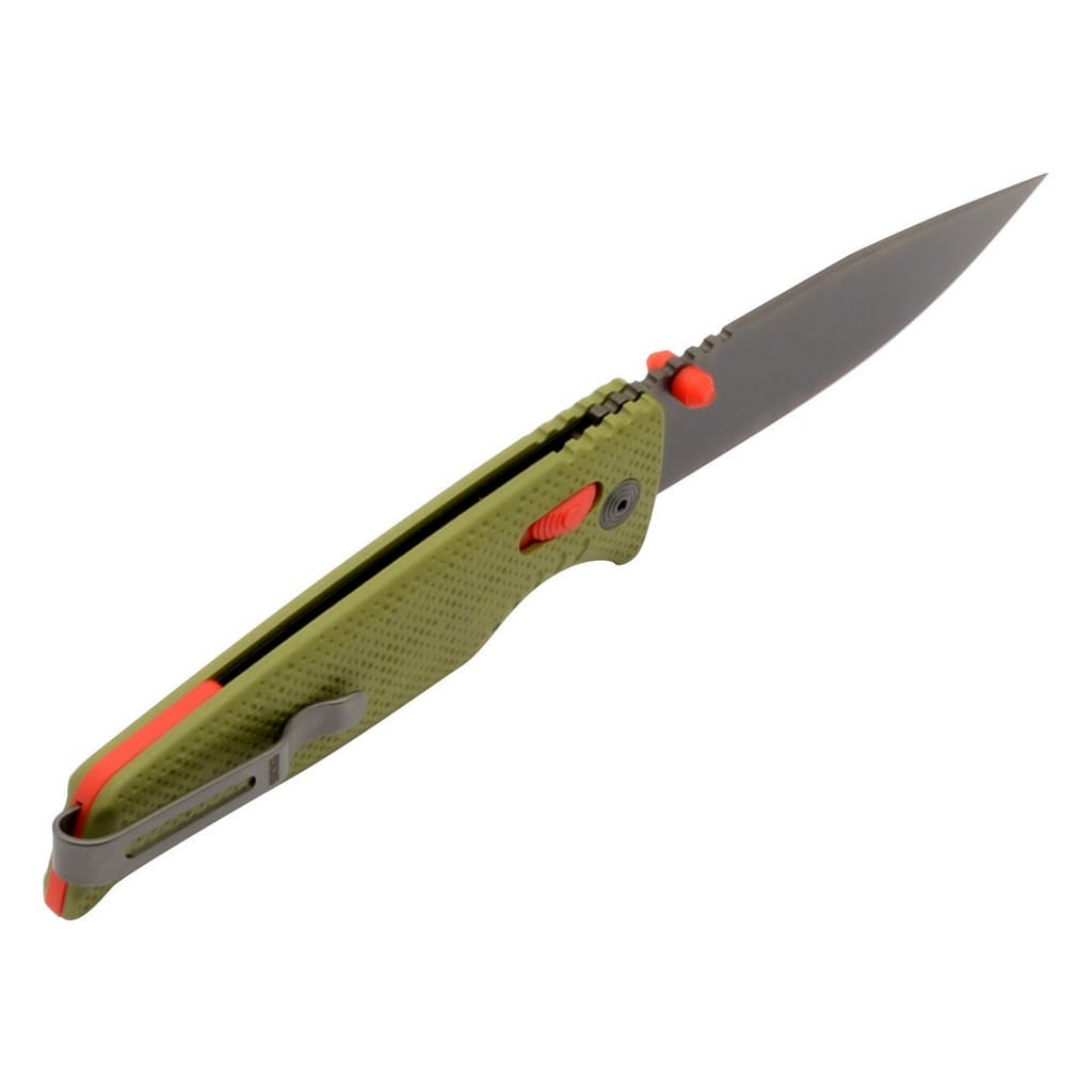Altair XR firmy SOG to ultralekki i kompaktowy nóż składany zaprojektowany do codziennego użytku. Folder charakteryzuje się innowacyjnym systemem blokującym XR Lock, co umożliwia rozłożenie narzędzia jedną ręką na dwa sposoby. Wykorzystując obustronny kołek umieszczony na głowni lub przesuwnym guzikiem na rękojeści. Klinga o profilu Drop Point została wykonana ze stali nierdzewnej CRYO 154CM o wysokiej zawartości węgla, chromu i molibdenu, co pozwala długo cieszyć się ostrą krawędzią tnącą i wysoką odpornością na zużycie i korozję. Poddanie jej kriogenicznej obróbce cieplnej czyni ją mniej podatną na pęknięcia i wykruszenia. Ostrze pokryto czarnym azotkiem tytanu Titanium Nitride zabezpieczającym przed odblaskami i zarysowaniami. Bezpieczeństwo użytkownika poprawia karbowany grzbiet klingi stanowiący stabilne podparcie dla ręki. Rękojeść w zielonym kolorze zrobiono z tworzywa GRN o antypoślizgowej fakturze poprawiającej przyczepność do dłoni. Głębokie wcięcie pod palec gwarantuje pewny chwyt i zapewnia komfort podczas pracy. Konstrukcję uzupełnia dwupozycyjny klips mocujący do wygodnego przenoszenia noża w kieszeni spodni lub przy wyposażeniu. Altair XR to idealny wybór na folder EDC, który doskonale sprawdzi się na wycieczce survivalowej, jak również w biurze.
