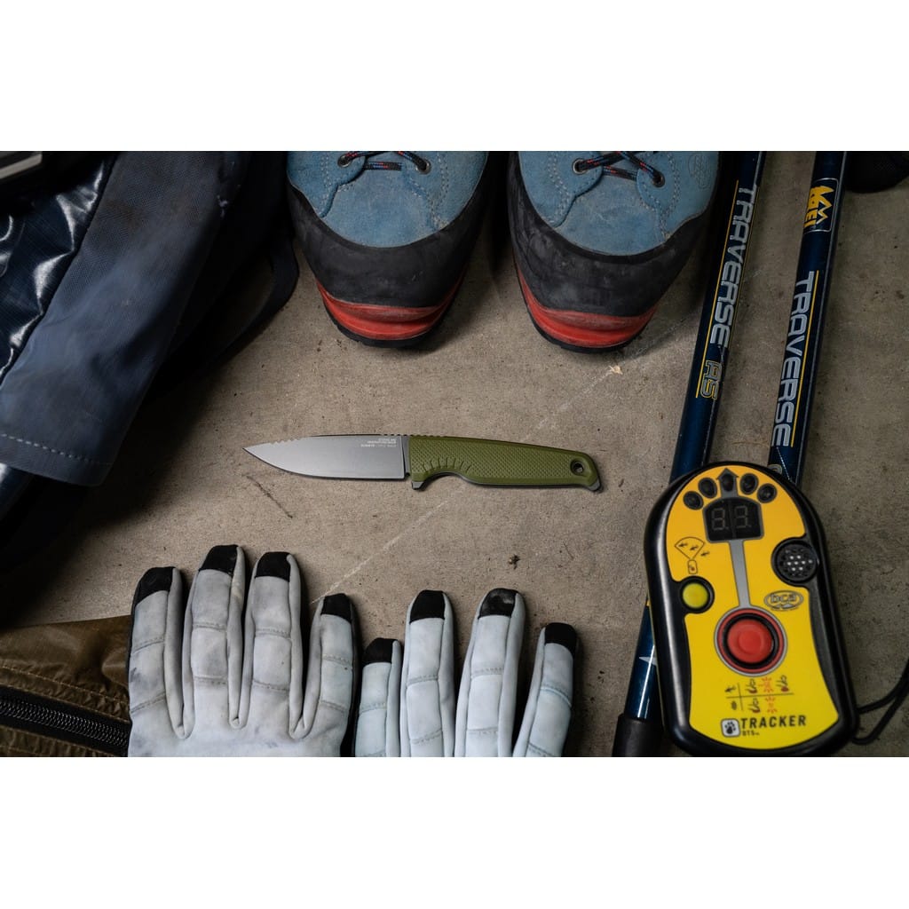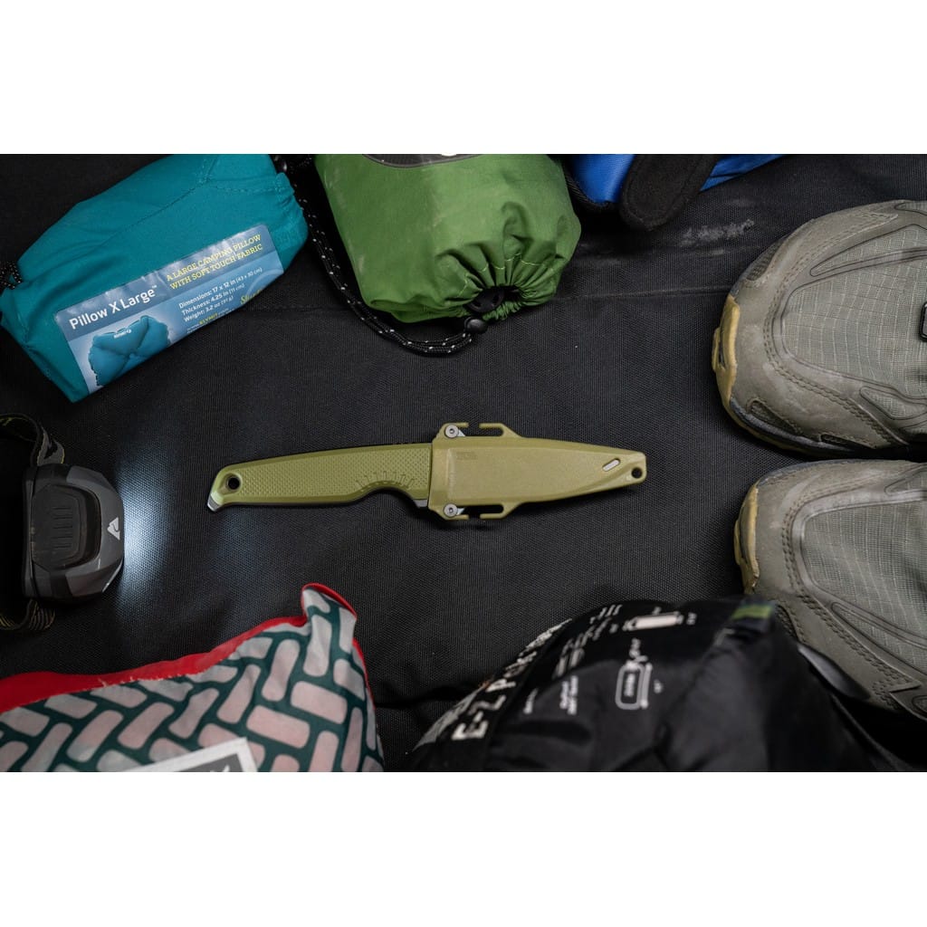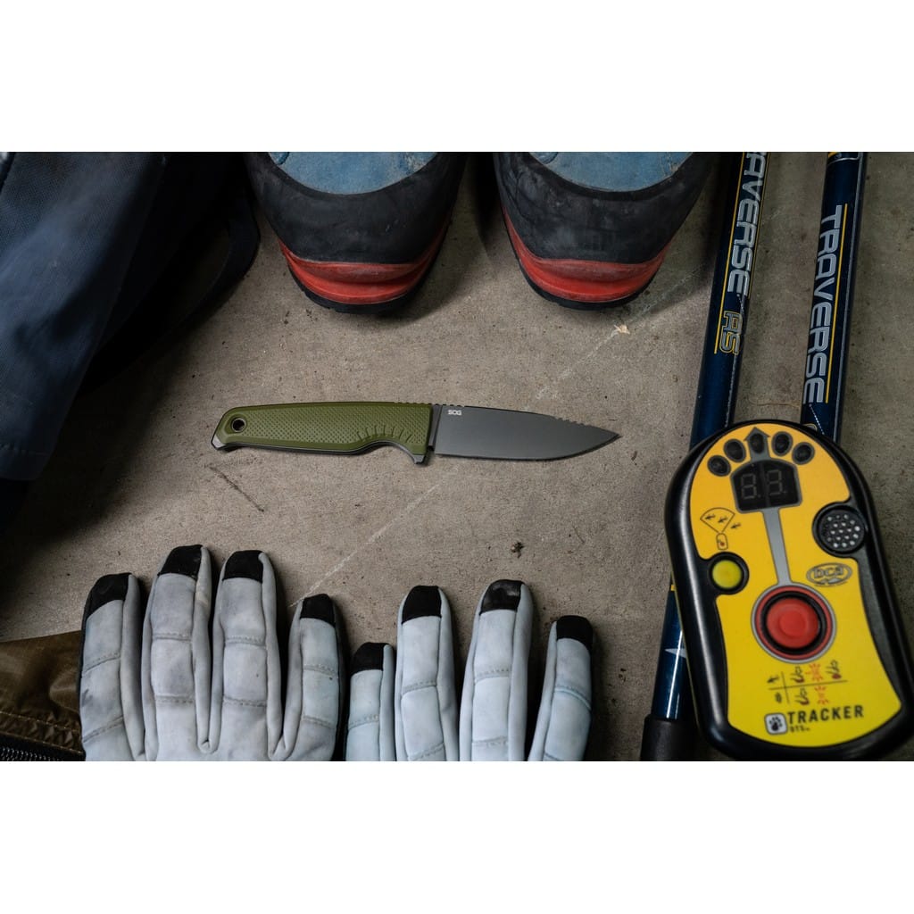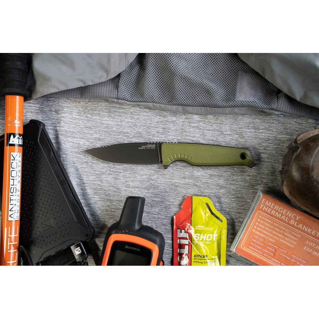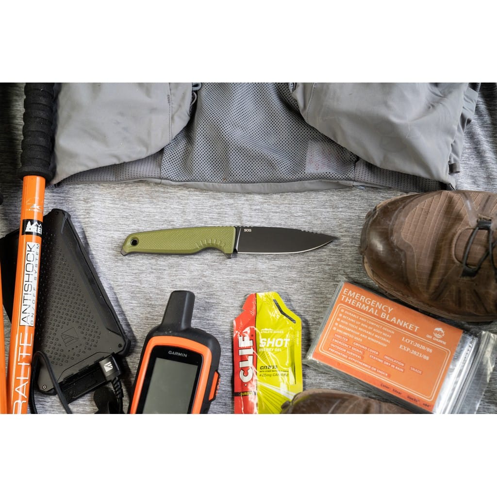 Altair FX firmy SOG to lekki i kompaktowy nóż z ostrzem stałym pełen innowacyjnych rozwiązań, dzięki którym jego funkcjonalność wkracza na wyższy poziom. Klinga o profilu Clip Point została wykonana ze stali nierdzewnej CRYO 154CM o wysokiej zawartości węgla, chromu i molibdenu, co pozwala długo cieszyć się ostrą krawędzią tnącą i wysoką odpornością na zużycie i korozję. Poddanie jej kriogenicznej obróbce cieplnej czyni ją mniej podatną na pęknięcia i wykruszenia. Matowy efekt na głowni uzyskano poprzez piaskowanie, to jest dzięki tak zwanej metodzie Bead Blast. Model posiada konstrukcję full tang, czyli z jednego kawałka stali, co dodatkowo podnosi jego wytrzymałość. Bezpieczeństwo użytkownika poprawia karbowany grzbiet klingi stanowiący stabilne podparcie dla palców, zaś jelec chroni dłoń przed jej przypadkowym zsunięciem się na krawędź tnącą. Demontowalne okładziny rękojeści z tworzywa GRN o antypoślizgowej fakturze gwarantują pewny chwyt w każdych warunkach i zapewniają odpowiedni komfort podczas pracy. Na zakończeniu znajduje się otwór umożliwiający zamocowanie linki i stworzenie oplotu na nadgarstek. Całość dopełnia pochwa z tworzywa, kompatybilna z systemem Molle. Wyposażono ją w stalowy klips mocujący, dzięki któremu możemy wygodnie transportować nóż blisko ciała. Aegis FX to model charakteryzujący się minimalistyczną i prostą konstrukcją o żywej kolorystyce i nowoczesnym designie. Szybko stanie się ulubieńcem i wiernym towarzyszem każdej wyprawy zarówno na łono natury, jak i do miasta.
