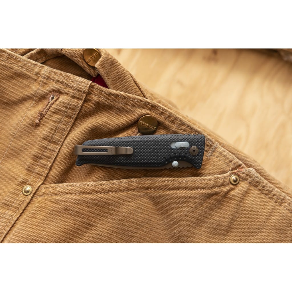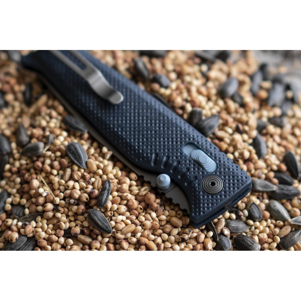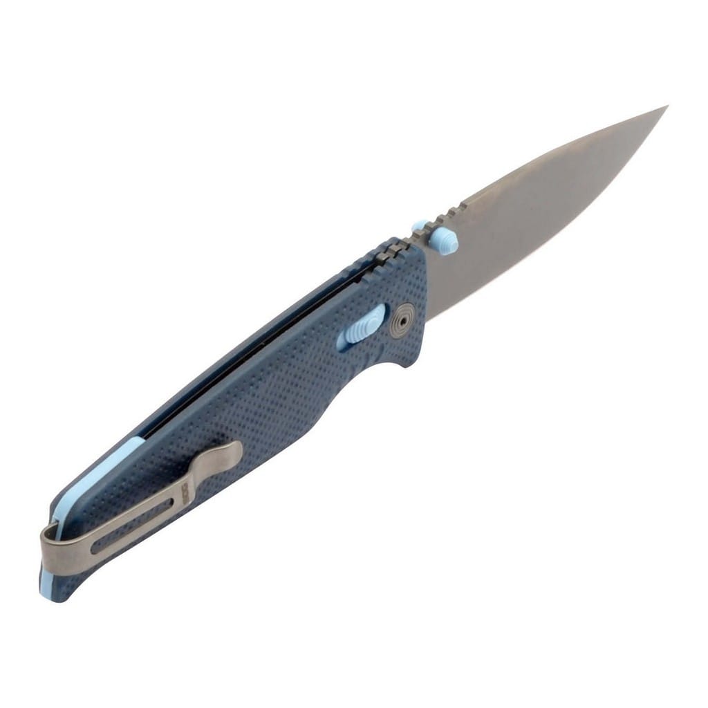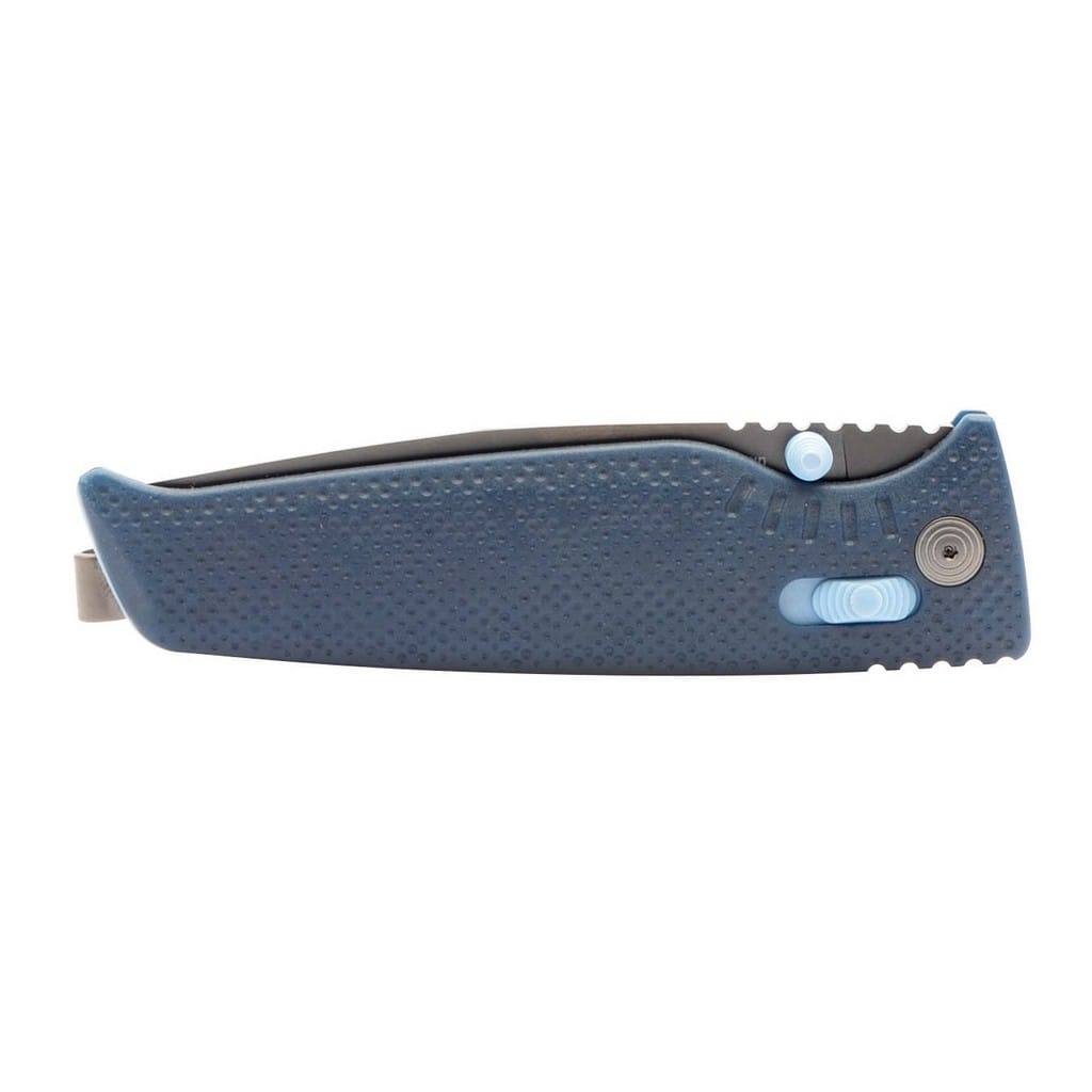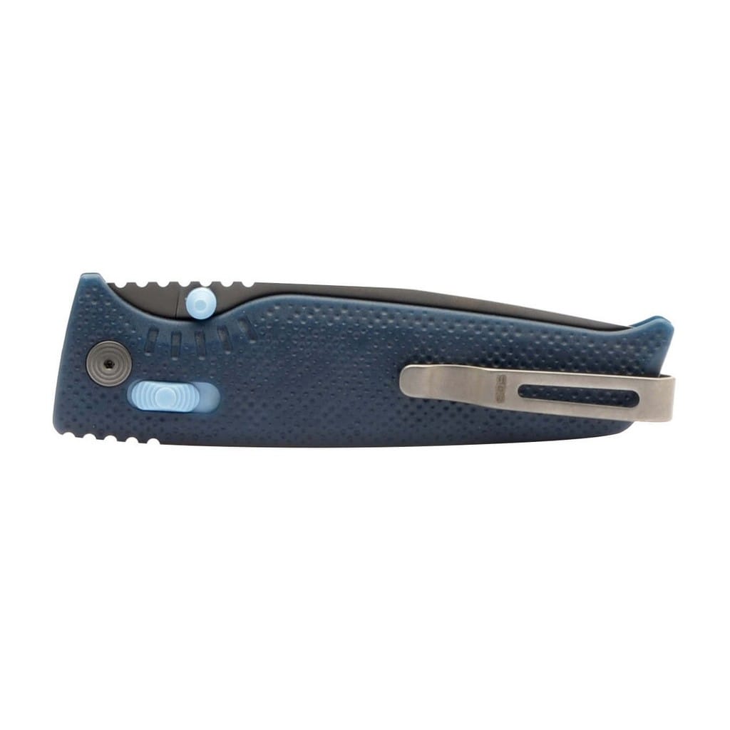 Altair XR firmy SOG to ultralekki i kompaktowy nóż składany zaprojektowany do codziennego użytku. Folder charakteryzuje się innowacyjnym systemem blokującym XR Lock, co umożliwia rozłożenie narzędzia jedną ręką na dwa sposoby. Wykorzystując obustronny kołek umieszczony na głowni lub przesuwnym guzikiem na rękojeści. Klinga o profilu Drop Point została wykonana ze stali nierdzewnej CRYO 154CM o wysokiej zawartości węgla, chromu i molibdenu, co pozwala długo cieszyć się ostrą krawędzią tnącą i wysoką odpornością na zużycie i korozję. Poddanie jej kriogenicznej obróbce cieplnej czyni ją mniej podatną na pęknięcia i wykruszenia. Ostrze pokryto czarnym azotkiem tytanu Titanium Nitride zabezpieczającym przed odblaskami i zarysowaniami. Bezpieczeństwo użytkownika poprawia karbowany grzbiet klingi stanowiący stabilne podparcie dla ręki. Rękojeść w niebieskim kolorze zrobiono z tworzywa GRN o antypoślizgowej fakturze poprawiającej przyczepność do dłoni. Głębokie wcięcie pod palec gwarantuje pewny chwyt i zapewnia komfort podczas pracy. Konstrukcję uzupełnia dwupozycyjny klips mocujący do wygodnego przenoszenia noża w kieszeni spodni lub przy wyposażeniu. Altair XR to idealny wybór na folder EDC, który doskonale sprawdzi się na wycieczce survivalowej, jak również w biurze.