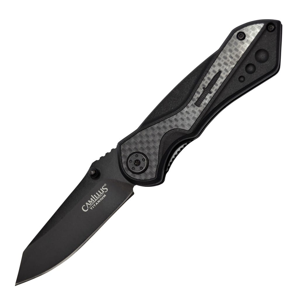 Camillus Machine to składany nóż EDC o taktycznym wyglądzie, który doskonale sprawdzi się do codziennych aktywności w domu i na świeżym powietrzu. Model posiada ostrze o profilu Reverse Tanto wykonane ze stali nierdzewnej 420. Pokryto ją opatentowaną przez producenta czarną powłoką Carbonitride Titanium. Jest to związek tytanu tworzący nieprzywierającą warstwę ochronną, co czyni klingę o dziesięć razy twardszą w stosunku do nieobrobionej stali. Dodatkowo zabezpiecza przed korozją i rysowaniem się powierzchni. W szybkim rozłożeniu narzędzia jedną ręką pomaga obustronny kołek na głowni. Bezpieczeństwo pracy zapewnia klasyczny mechanizm Liner Lock oraz karbowanie na grzbiecie noża stanowiące stabilne wsparcie dla kciuka. Rękojeść z nylonu wzmocnionego włóknem szklanym wzbogacono o element ozdobny z włókna węglowego. Ergonomiczne wyprofilowanie okładzin gwarantuje pewny chwyt w każdej sytuacji. Konstrukcję uzupełnia klips mocujący do wygodnego przenoszenie foldera w kieszeni spodni lub przy wyposażeniu. Firma Camillus Cutlery od 1876 roku dostarcza niezawodne narzędzia, które wytrzymują próbę czasu. Jest to jeden z najstarszych amerykańskich producentów noży, cieszący się uznaniem na całym świecie.