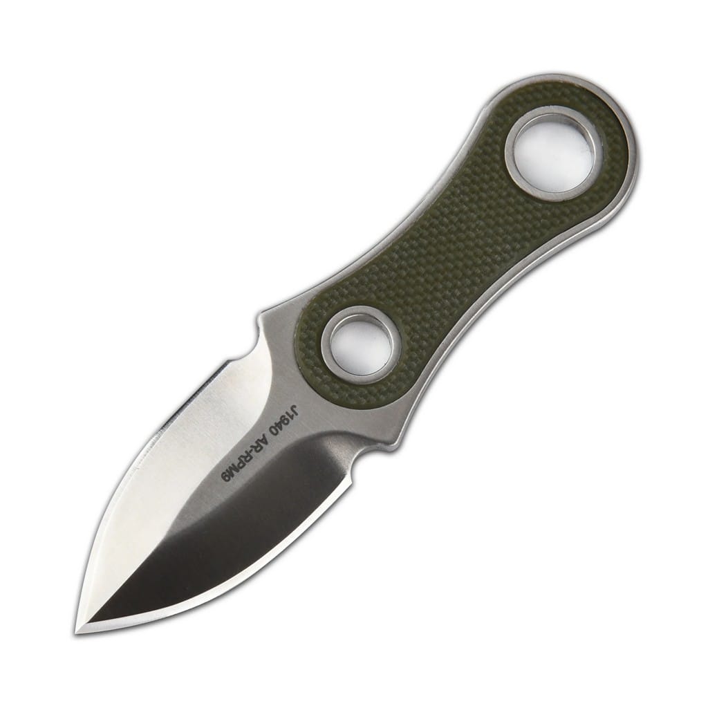 Knap to miniaturowy nożyk od firmy CJRB Cutlery zaprojektowany jako zapasowe narzędzie do codziennego noszenia. Jego niewielkie wymiary i znikoma waga nie obciążą naszych kieszeni, a w sytuacji, gdy bedziemy musieli coś przeciąć okaże się doskonałym dodatkiem do naszej garderoby lub torebki. W zestawie znajduje się również skórzana pochwa do bezpiecznego transportowania produktu. Model charakteryzuje się konstrukcją full tang, zrobioną z jednego kawałka nierdzewnej stali proszkowej AR-RPM9, produkowanej i zastrzeżonej przez Artisan Cutlery. Charakteryzuje się ona wysoką odpornością na korozję, długo utrzymuje ostrą krawędź tnącą oraz jest łatwa w utrzymaniu i w ostrzeniu. Ostrze o profilu Spear Point świetnie sprawdzi się do przebijania i penetracji. Wykończenie głowni metodą Sand Polish pozostawia drobne ryski lekko matujące powierzchnię, dające efekt niedokładnego wypolerowania. Wyprofilowane okładziny chwytu zrobiono z odpornego na warunki atmosferyczne materiału G10 o antypoślizgowej fakturze. Na zakończeniu znajduje się otwór z zamocowaną linką ułatwiającą wyciąganie noża z pokrowca. CJRB to przystępna cenowo marka własna firmy Artisan Cutlery, która narodziła się z pragnienia, aby jakość i wydajność oferowanych produktów była dostępna dla wszystkich, bez kompromisów w zakresie materiałów, czy konstrukcji. Noże CJRB tworzone są przez zespół zajmujący się również linią premium, dlatego możemy spodziewać się kunsztu i tej samej dbałości o szczegóły, co w droższych egzemplarzach.