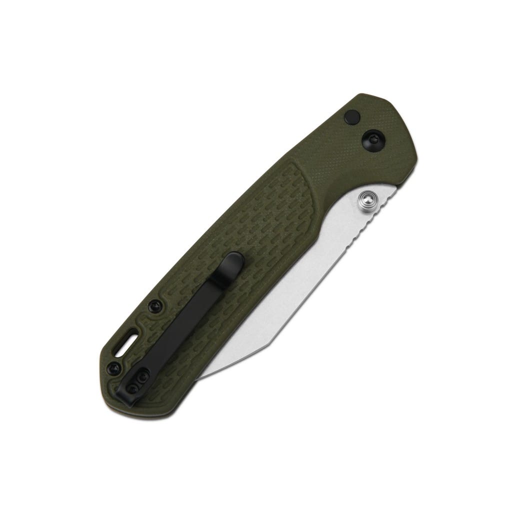 Pyrite-Light w wersji Large to folder zaprojektowany przez firmę CJRB Cutlery do codziennego użytku, oferujący szybkość i funkcjonalność działania w każdej sytuacji. Model można rozłożyć jedną ręką na dwa sposoby, w zależności od indywidualnych preferencji użytkownika. Tradycyjnie obustronnym kołkiem lub przyciskiem od blokady guzikowej Button Lock. Ponadto klingę osadzono na ceramicznych łożyskach kulkowych, dzięki czemu wysuwa się płynnie i gładko. Ostrze o profilu Wharncliffe zostało zrobione z nierdzewnej stali proszkowej AR-RPM9, produkowanej i zastrzeżonej przez Artisan Cutlery. Charakteryzuje się ona wysoką odpornością na korozję, długo utrzymuje ostrą krawędź tnącą oraz jest łatwa w utrzymaniu i w ostrzeniu. Wykończenie jej metodą Stonewash pozostawia nieregularną powłokę dobrze maskującą rysy i zadrapania powstające podczas eksploatacji. Bezpieczeństwo zapewnia karbowany grzbiet klingi stanowiący stabilne wsparcie dla kciuka oraz blokada Button Lock chroniąca przed przypadkowym złożeniem się narzędzia, gdy jest w użyciu. Zieloną rękojeść wykonano z odpornego na warunki atmosferyczne materiału G10. Wyprofilowanie pod palec i jej antypoślizgowa faktura gwarantują dobrą przyczepność do dłoni, nawet w trudnych i wymagających warunkach. Na zakończeniu umieszczono otwór umożliwiający przełożenie breloka ozdobnego lub paracordu. Całość dopełnia dwupozycyjny klips mocujący pozwalający na głębokie przenoszenie noża w kieszeni spodni. W zestawie znajduje się ściereczka z mikrofibry oraz pokrowiec z miękkim wnętrzem i zamykaniem na suwak do wygodnego transportowania narzędzia. CJRB to przystępna cenowo marka własna firmy Artisan Cutlery, która narodziła się z pragnienia, aby jakość i wydajność oferowanych produktów była dostępna dla wszystkich, bez kompromisów w zakresie materiałów, czy konstrukcji. Noże CJRB tworzone są przez zespół zajmujący się również linią premium, dlatego możemy spodziewać się kunsztu i tej samej dbałości o szczegóły, co w droższych egzemplarzach.