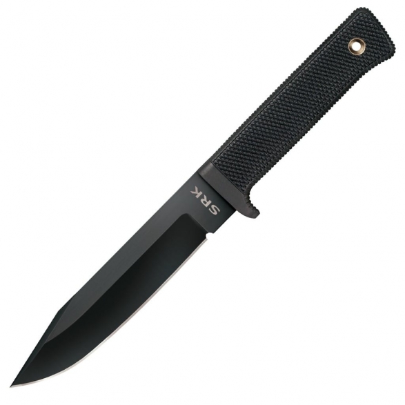 SRK (Survival Rescue Knife) to wielozadaniowy nóż potrafiący sprostać nawet najbardziej wymagającym zadaniom. Głownia o grubości 5 mm została wykonana z bardzo dobrej jakości stali węglowej SK-5. Dodatkowo pokryto ją powłoką ochronną Tuff-Ex, która chroni przed korozją oraz eliminuje refleksy świetlne. Zakończenie ostrza jest wystarczająco mocne, aby przeciąć najtwardszy materiał, jak również wystarczająco ostre, aby sprawdzić się przy pracach wymagających precyzji. Rękojeść z tworzywa Kray-Ex o antypoślizgowej fakturze doskonale trzyma się dłoni i gwarantuje pewny chwyt niezależnie od panujących warunków pogodowych. Jelec zabezpiecza dłoń przed zsunięciem się palców na ostrze. Uzupełnieniem zestawu jest pochwa z Sceure-Ex, dzięki której możemy bezpiecznie przenosić nóż przy pasie. SRK to doskonały model terenowy, który cieszy się niesłabnącą popularnością wśród pracowników służb mundurowych oraz wszystkich fanów survivalu.