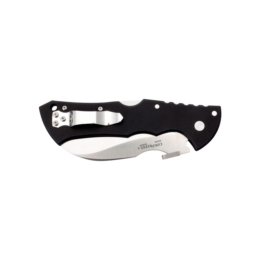 Black Talon II to nowoczesne arcydzieło powstałe przy współpracy dwóch cenionych w branży kniefemakerów. Andrew Demko oraz prezes firmy Cold Steel Lynn C Thompson wspólnie zaprojektowali elegancki model taktyczny o drapieżnym i oryginalnym wyglądzie. Ostrze o profilu Hawkbill zrobiono z amerykańskiej stali nierdzewnej klasy premium CPM S35VN. Odpowiednio dobrane proporcje wanadu i niobu wpływają na jej twardość, wytrzymałość i odporność na korozję. Wykończenie metodą Satin pozostawia drobne ryski lekko matujące powierzchnię, co daje efekt niedokładnego wypolerowania. Ząbkowana krawędź tnąca pozwala na skuteczne cięcie twardych lin, taśm oraz innych włóknistych materiałów, z którymi gładka klinga nie dałaby sobie rady. Ten specyficzny kształt głowni świetnie nadaje się do głębokiego przebijania i dziurkowania. Błyskawiczne rozłożenie noża jedną ręką umożliwia umieszczony na grzbiecie ostrza dysk. Ponadto klingę wysuniemy już w trakcie wyjmowania foldera z kieszeni spodni, zahaczając dyskiem o krawędź ubrania. Opatentowany mechanizm Tri-Ad Lock to niezawodna oraz jedna z najbardziej innowacyjnych i najsilniejszych blokad dostępnych na rynku. Dzięki niej możemy czuć się bezpiecznie, bez względu od stopnia zaawansowania zadania, które planujemy wykonać. Teksturowana rękojeść z odpornego na warunki atmosferyczne materiału G10 zapewnia doskonałą ergonomię chwytu nawet w mokrej dłoni. Dodatkowo karbowany grzbiet narzędzia stanowi stabilne wsparcie dla kciuka podczas realizacji precyzyjnych prac. Na zakończeniu umieszczono otwór umożliwiający przełożenie breloka ozdobnego lub paracordu. Całość uzupełnia dwupozycyjny klips mocujący do wygodnego przenoszenie noża blisko ciała lub przy wyposażeniu. Black Talon II, charakteryzujący się agresywnym designem i pewną konstrukcją, gwarantuje efektywność w każdej sytuacji.