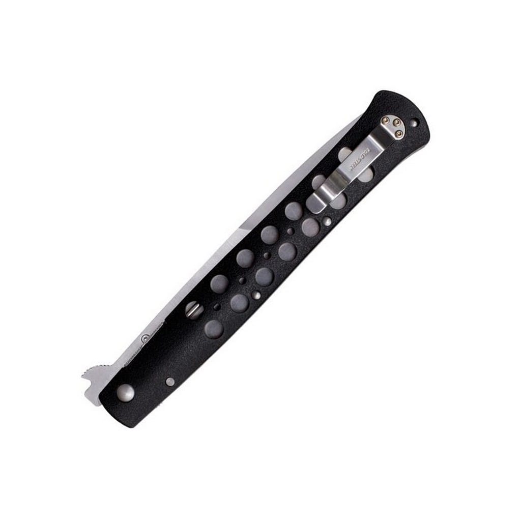 Cold Steel Ti-Lite to taktyczny nóż składany nawiązujący swoim wyglądem do noży sprężynowych z lat 50. Ostrze wykonane z japońskiej stali AUS 8A, która jest niezwykle wytrzymała oraz ostra niczym brzytwa. Rękojeść z Zytelu zapewnia pewne trzymanie oraz zmniejsza wagę noża przez co praca z nim jest lżejsza i łatwiejsza. Otwieranie odbywa się za pomocą kołka na głowni lub flippera, który służy także jako jelec. Maksymalne bezpieczeństwo podczas pracy zapewnia opatentowana blokada sprężynowa, wytrzymująca duże obciążenia. Niewielki klips mocujący dopełnia całość i ułatwia przenoszenie. Nóż idealnie sprawdzi się w zestawach EDC, ze względu na swoje świetne wykonanie oraz wszechstronne zastosowanie.