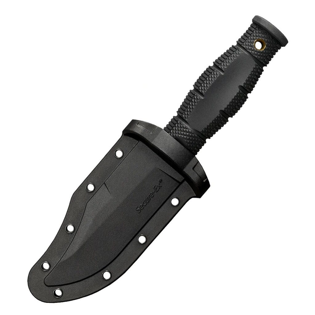 Nóż Mini Leatherneck firmy Cold Steel to uosobienie wielkości w kompaktowym i lekkim wydaniu. Model posiada szeroką głownię typu Clip Point wykonaną ze stali nierdzewnej 8Cr13MoV o satynowym wykończeniu. Wyprofilowana rękojeść została zrobiona z materiału Kray-Ex o antypoślizgowej fakturze, dzięki czemu chwyt dobrze przylega do dłoni i pozwala na komfortową pracę. Otwór na zakończeniu umożliwia zamocowanie linki i stworzenie oplotu na nadgarstek. Nad bezpieczeństwem pracy czuwa obustronny jelec, który chroni palce przed ich przypadkowym zsunięciem się na krawędź tnąca. W zestawie znajduje się wielofunkcyjna pochwa z tworzywa Secure-Ex posiadająca liczne otwory na krawędziach, dzięki czemu możemy zamocować ją do plecaka lub zawiesić na szyi i wygodnie transportować nasz nóż