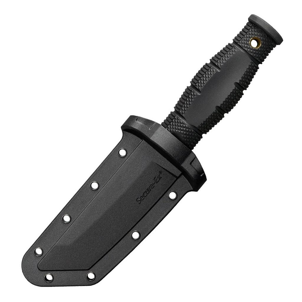 Nóż Mini Leatherneck firmy Cold Steel to uosobienie wielkości w kompaktowym i lekkim wydaniu. Model posiada głownię typu Tanto wykonaną ze stali nierdzewnej 8Cr13MoV o satynowym wykończeniu. Wyprofilowana rękojeść została zrobiona z materiału Kray-Ex o antypoślizgowej fakturze, dzięki czemu chwyt dobrze przylega do dłoni i pozwala na komfortową pracę. Otwór na zakończeniu umożliwia zamocowanie linki i stworzenie oplotu na nadgarstek. Nad bezpieczeństwem pracy czuwa obustronny jelec, który chroni palce przed ich przypadkowym zsunięciem się na krawędź tnąca. W zestawie znajduje się wielofunkcyjna pochwa z tworzywa Secure-Ex posiadająca liczne otwory na krawędziach, dzięki czemu możemy zamocować ją do plecaka lub zawiesić na szyi i wygodnie transportować nasz nóż