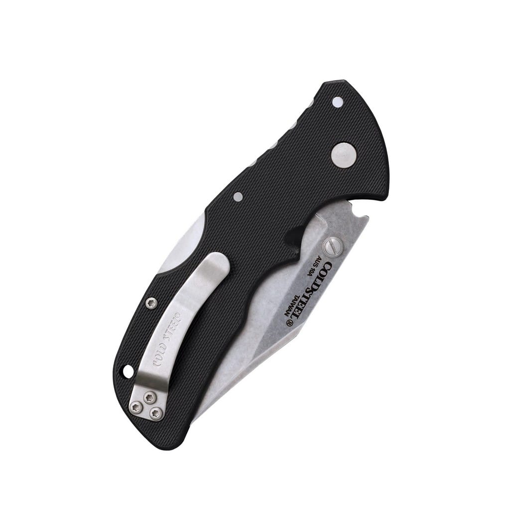 Seria Recon 1 firmy Cold Steel to popularna rodzina noży chętnie wybierana przez funkcjonariuszy służb mundurowych, żołnierzy, ratowników, a także cywili, którzy cenią precyzyjne i godne zaufania narzędzia. Model w wersji mini ponownie powraca do oferty z nową rękojeścią wykonaną z tworzywa sztucznego formowanego wtryskowo o antypoślizgowej fakturze. Ergonomicznie zaprojektowany chwyt doskonale układa się w dłoni i pozwala na komfortową pracę. Ostrze o uniwersalnym profilu Clip Point wykonano ze stali nierdzewnej AUS10A i wykończono metodą Stonewash pozostawiającą nieregularną powłokę dobrze maskującą rysy powstające podczas eksploatacji. Zaprojektowana przez Andrew Demko blokada Tri-Ad, czyli jedna z najwytrzymalszych jakie można zastosować w modelu składanym, zabezpiecza przed przypadkowym złożeniem się klingi gdy jest w użyciu. W szybkim wysunięciu głowni jedną ręką pomaga duży obustronny kołek. Konstrukcję uzupełnia otwór na linkę oraz dwupozycyjny klips mocujący do wygodnego przenoszenia noża w kieszeni.