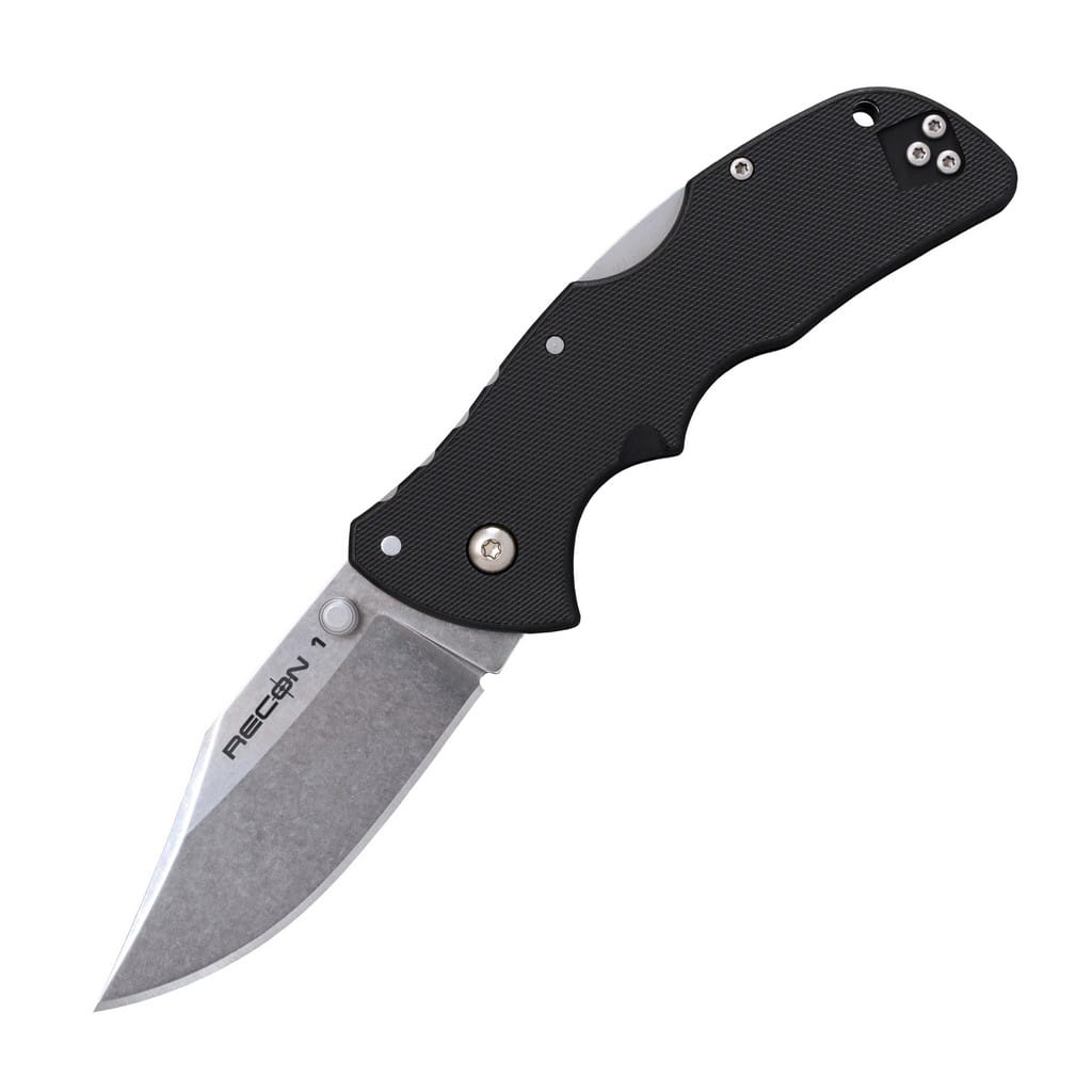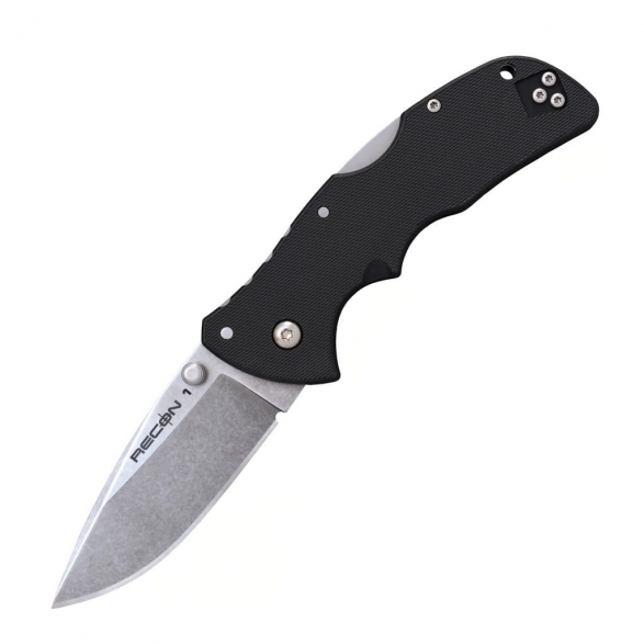 Seria Recon 1 firmy Cold Steel to popularna rodzina noży chętnie wybierana przez funkcjonariuszy służb mundurowych, żołnierzy, ratowników, a także cywili, którzy cenią precyzyjne i godne zaufania narzędzia. Model w wersji mini ponownie powraca do oferty z nową rękojeścią wykonaną z tworzywa sztucznego formowanego wtryskowo o antypoślizgowej fakturze. Ergonomicznie zaprojektowany chwyt doskonale układa się w dłoni i pozwala na komfortową pracę. Ostrze o profilu Spear Point wykonano ze stali nierdzewnej AUS10A i wykończono metodą Stonewash pozostawiającą nieregularną powłokę dobrze maskującą rysy powstające podczas eksploatacji. Zaprojektowana przez Andrew Demko blokada Tri-Ad, czyli jedna z najwytrzymalszych jakie można zastosować w modelu składanym, zabezpiecza przed przypadkowym złożeniem się klingi gdy jest w użyciu. W szybkim wysunięciu głowni jedną ręką pomaga duży obustronny kołek. Konstrukcję uzupełnia otwór na linkę oraz dwupozycyjny klips mocujący do wygodnego przenoszenia noża w kieszeni.