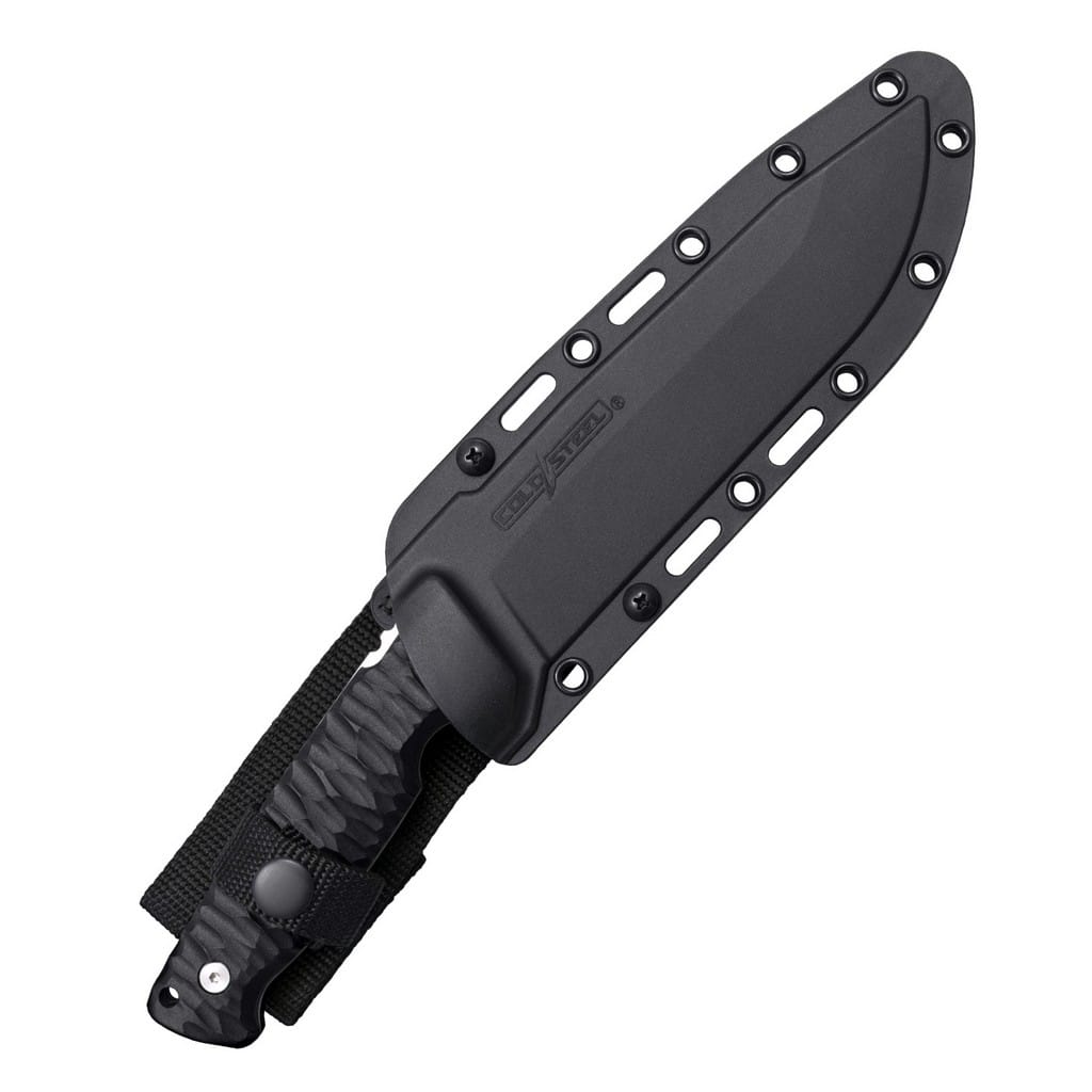 Razor Tek 6.5” firmy Cold Steel to duży i solidny nóż survivalowy zaprojektowany do wymagających zadań w terenie. Model charakteryzuje się gładkim ostrzem Recurve w kształcie fali, dzięki czemu posiada bardzo dobre właściwości tnące. Satynowe wykończenie pozostawia drobne ryski lekko matujące powierzchnię, co daje efekt niedokładnego wypolerowania. Narzędzie o konstrukcji full tang zostało wykonane z jednego kawałka niemieckiej stali nierdzewnej Krupp, która długo trzyma ostrość i jest łatwa do ponownego naostrzenia. Bezpieczeństwo zapewnia jelec chroniący przed przypadkowym zsunięciem się ręki na krawędź tnącą oraz karbowany grzbiet klingi stanowiący stabilne podparcie dla kciuka. Ergonomicznie wyprofilowana rękojeść z nylonu wzmocnionego włóknem szklanym (GFN) posiada antypoślizgową teksturę poprawiającą przyczepność do dłoni oraz zapewniającą komfort użytkowania. Dodatkowo na zakończeniu uchwytu znajduje się otwór umożliwiający zamocowanie linki i stworzenie oplotu na nadgarstek. Do zestawu dołączono również funkcjonalną pochwę z tworzywa Secure-Ex z licznymi otworami na brzegach i mocowaniem na pasek, pozwalającą wygodnie transportować narzędzie blisko ciała lub przy wyposażeniu. Razor Tek to wytrzymały nóż outdoorowy, który doskonale sprawdzi się do różnego rodzaju prac na świeżym powietrzu.