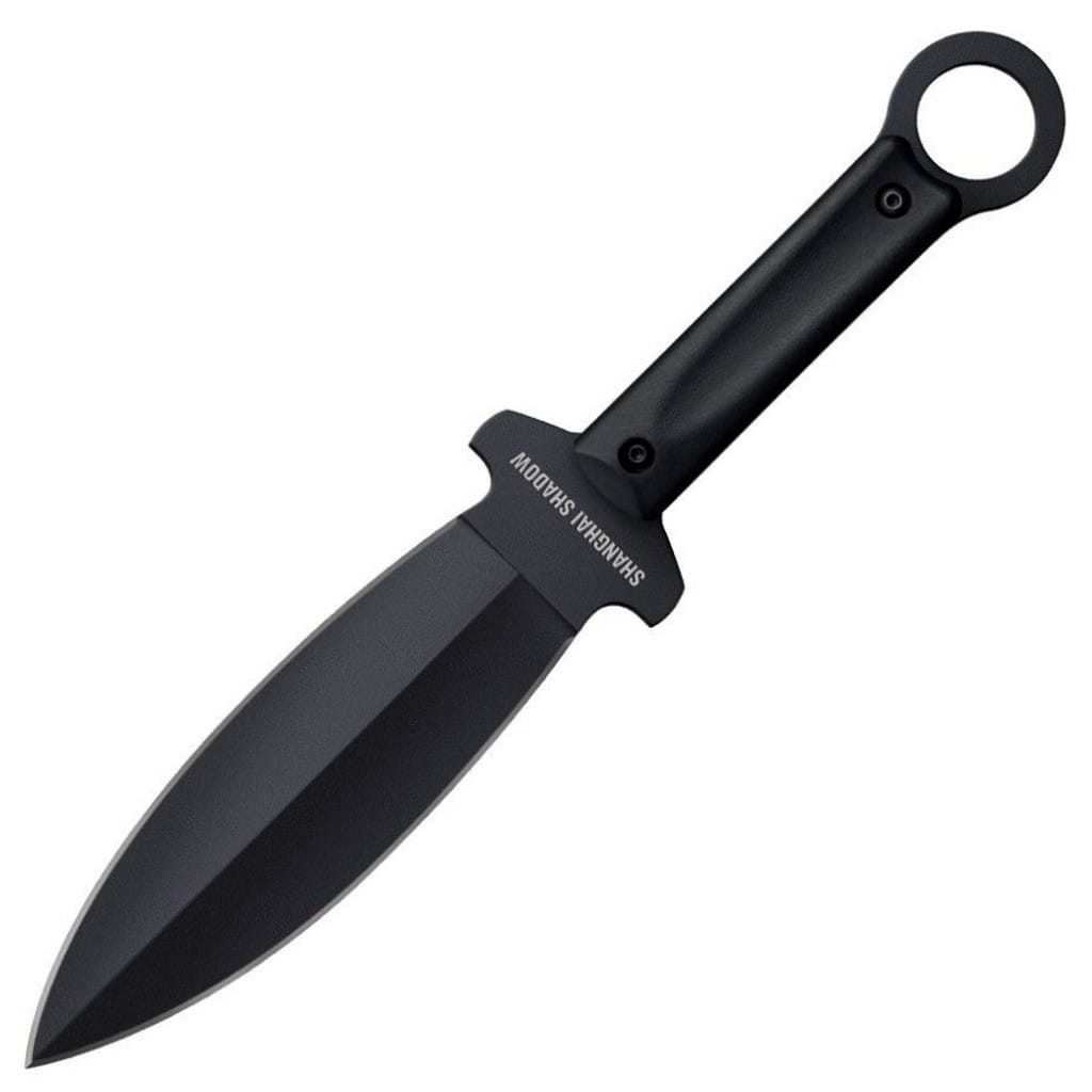 Shanghai Shadow firmy Cold Steel został wykonany z jednego kawałka stali węglowej 1055. Taka konstrukcja znacznie zwiększa wytrzymałość noża. Obosieczne ostrze typu Spear Point pokryto czarną powłoką chroniącą przed korozją oraz odblaskami, a obustronny jelec zabezpiecza dłoń przed zsunięciem się na głownię. Na zakończeniu rękojeści znajduje się sporych rozmiarów pierścień, doskonałe miejsce na palec wskazujący. Zapewnia to pewniejszy chwyt noża, a także szybką możliwość jego obrotu. W zestawie występuje również  pochwa z tworzywa Secure-Ex do wygodnego przenoszenia.