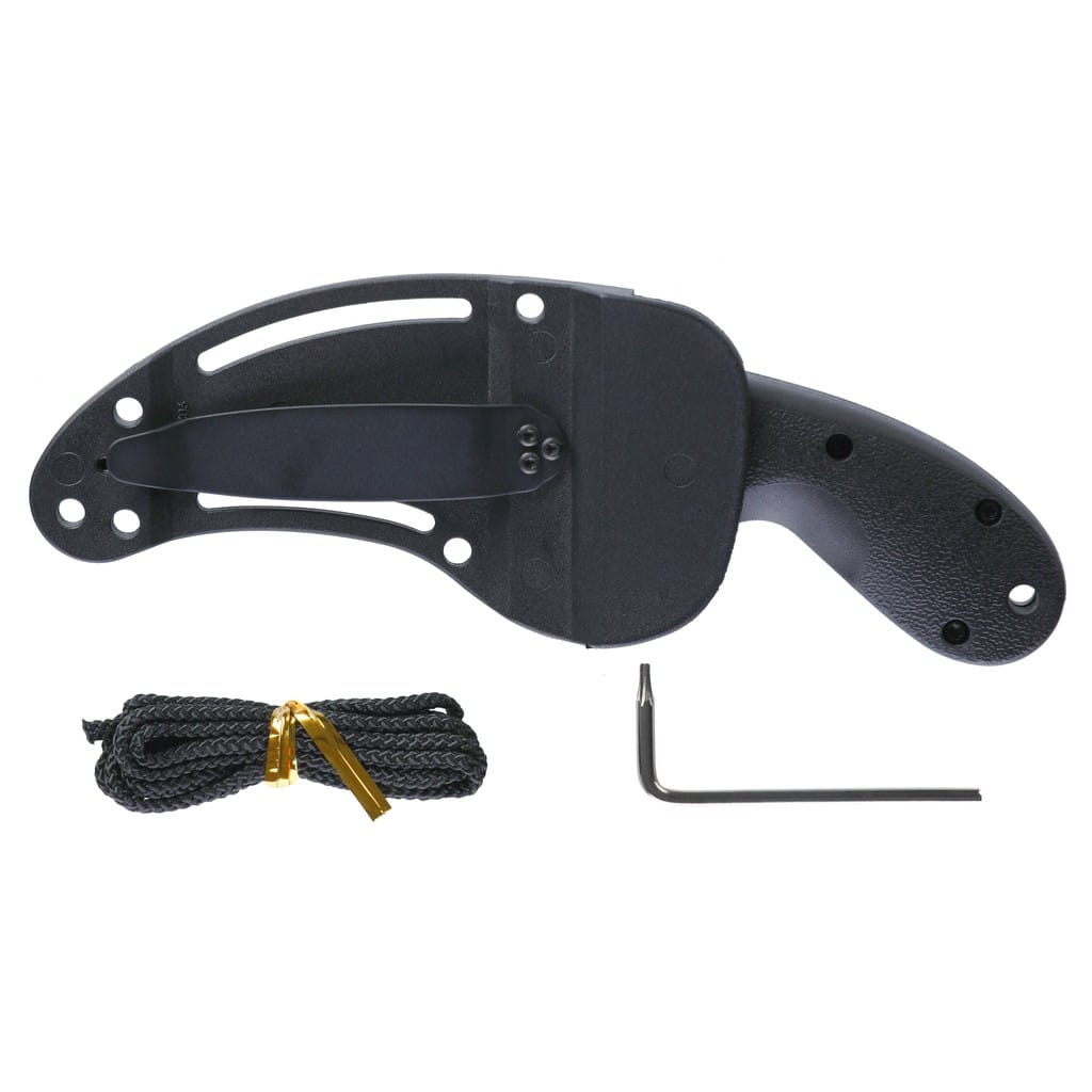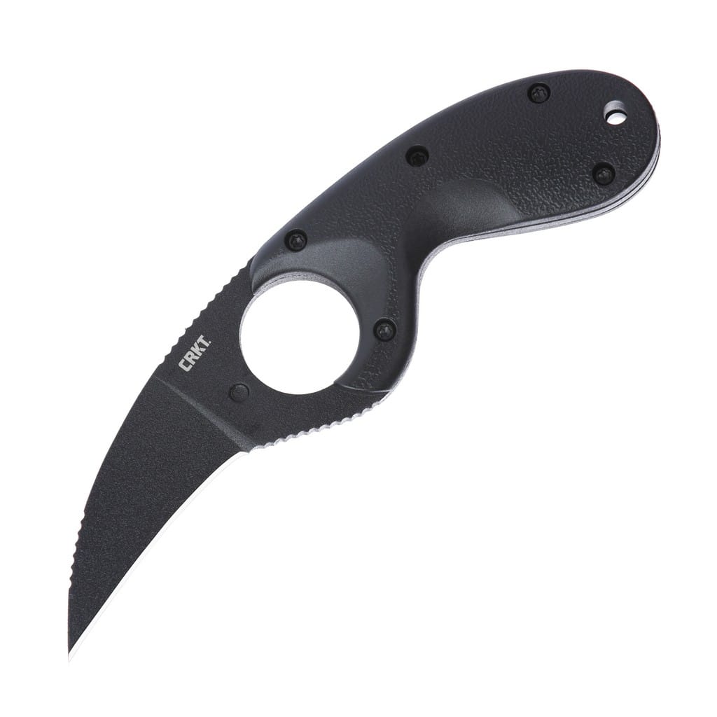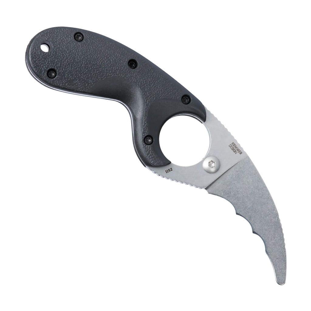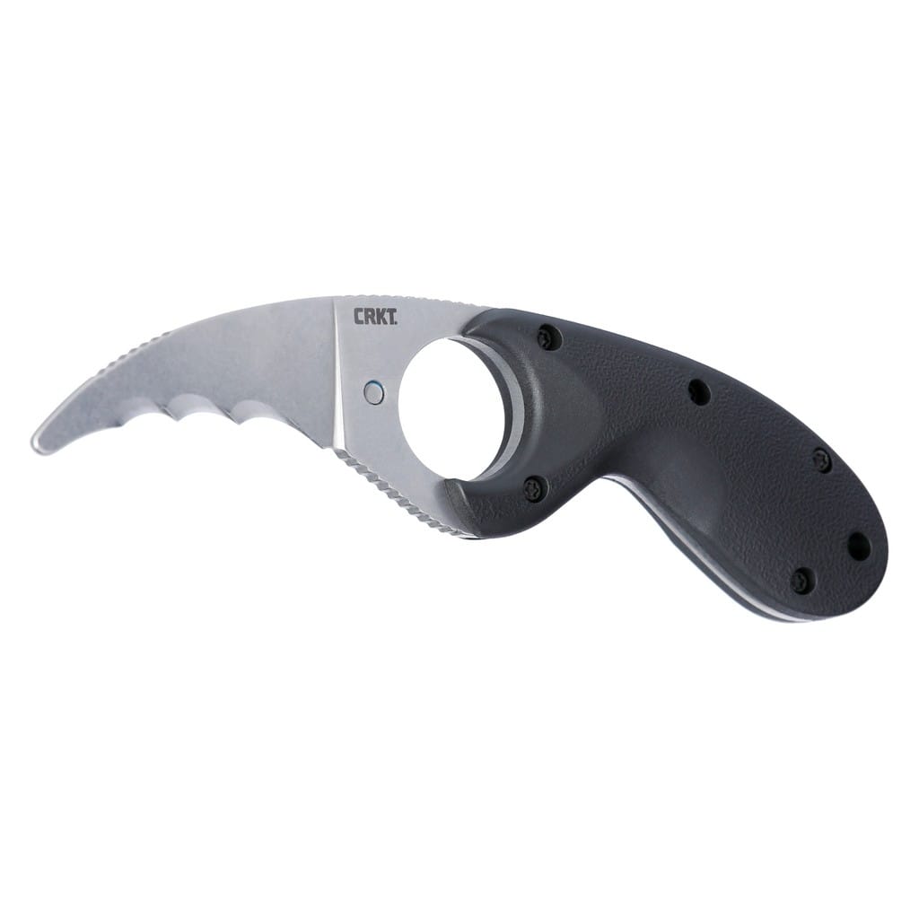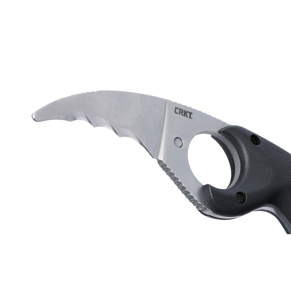 CRKT Bear Claw to kompaktowy model zaprojektowany przez błyskotliwego knifemakera mieszkającego na Alasce, Russa Kommera. Ze względu na charakterystyczny kształt ostrza o tępym zakończeniu idealnie sprawdzi się do noszenia na tratwach i pontonach, a także jako narzędzie ratunkowe. Stanowi świetny wybór dla entuzjastów sportów wodnych, miłośników rafting oraz przewodników rzecznych. Klinga o zakrzywionym do dołu drapieżnym profilu Hawkbill została wykonana z japońskiej stali nierdzewnej AUS-8 odpornej na korozję, twardej i długo trzymającej ostrość. Wykończenie jej metodą Stonewash pozostawia nieregularną powłokę dobrze maskującą rysy i zadrapania powstające podczas eksploatacji. Opatentowane przez producenta zęby Veff na krawędzi tnącej doskonale wbijają się w cięty materiał, dlatego z łatwością przetniemy nimi miękkie przedmioty, jak i twarde liny, sznury i taśmy. Karbowane krawędzie noża dają stabilne wsparcie dla ręki i poprawiają bezpieczeństwo podczas pracy. Teksturowana rękojeść zrobiona z nylonu wzmocnionego włóknem szklanym gwarantuje dobrą przyczepność do dłoni i zapewnia komfort użytkowania. Chwyt poprawia okrągły otwór na palec, co zwiększa kontrolę nad narzędziem. Na zakończeniu umieszczono otwór umożliwiający przełożenie breloka ozdobnego lub paracordu. Do zestawu dołączono pochwę z formowanego tworzywa z klipsem mocującym, aby ułatwić wygodne transportowanie noża blisko ciała. Dodatkowo liczne otwory na jej krawędzi pozwalają na więcej opcji przenoszenia poprzez doczepienie całości do plecaka lub kamizelki.