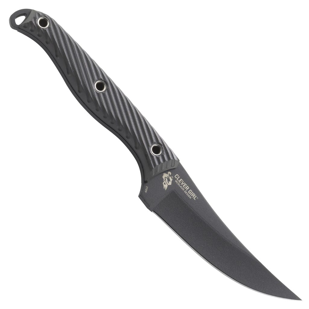 Clever Girl to duży taktyczny nóż zaprojektowany przez weterana wojennego Austina McGlauna. Jego ergonomiczna budowa i wykonanie z jednego kawałka stali pozwala na instynktowne, szybkie ruchy. Komfort pracy i właściwą przyczepność gwarantują specjalnie wyprofilowane okładziny rękojeści wykonane z G10, tworzywa odpornego na skrajne temperatury oraz substancje chemiczne. Ostrze ze stali węglowej SK-5 zostało odpowiednio zahartowane, dzięki czemu jest twarde i wytrzymałe na wykruszenia. Dodatkowo pokryto je proszkowo czarną farbą zabezpieczającą przed korozją i odblaskami. Uzupełnieniem zestawu jest pochwa z Zytleu, która pozwala na bezpieczne przenoszenie noża przy pasie dzięki dołączonemu uchwytowi. Clever Girl to skuteczne i niezawodne narzędzie, które doskonale sprawdzi się do zadań w terenie.