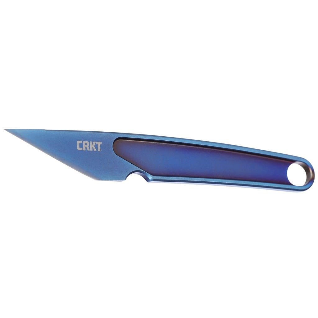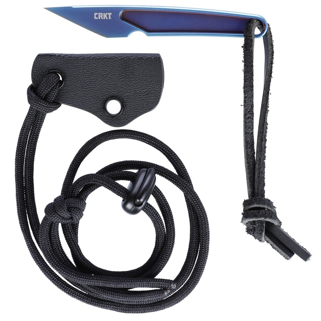 HangTi firmy CRKT to wykonany z jednego kawałka tytanu ultralekki nóż do niewymagających zadań związanych z cięciem. Wyglądem nawiązuje do tradycyjnych, japońskich ostrzy Kiridashi używanych do precyzyjnych prac, takich jak rysowanie i wycinanie. Model w całości anodowano na niebiesko, co dodaje unikatowego charakteru konstrukcji. Na zakończeniu rękojeści znajduje się otwór z zamocowanym skórzanym rzemieniem. Do zestawu dołączono pochwę z kydexu wraz z linką paracord służącą do zawieszenia nożyka na szyi, tak aby mieć go zawsze w zasięgu ręki. HangTi to nieobciążający naszego karku wytrzymały model zaprojektowany do codziennego noszenia. Doskonale poradzi sobie z obróbką i artystyczną zabawą w drewnie, z rozcinaniem paczek, listów oraz innych, drobnych czynności.