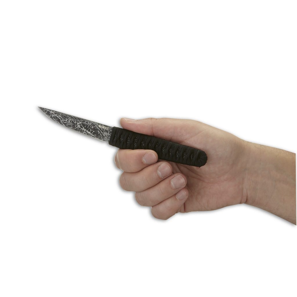 CRKT Obake to kompaktowy nóż z ostrzem stałym stworzony przez projektanta z Meksyku, Lucasa Burnleya. Stanowi pomysłowe połączenie klasycznego stylu z nowoczesnymi materiałami i technikami wykonania. Wyglądem nawiązuje do japońskich noży Kwaiken, a sama rękojeść przypominająca styl katany została ozdobiona imitacją skóry płaszczki i opleciona nylonową linką. Ostrze o profilu Clip Point wykonano ze stali nierdzewnej 8Cr14MoV o twardości 58-59 HRC i pokryto szarym związkiem tytanu o charakterystycznym wzorze, który nadaje wyjątkowy efekt wizualny. W komplecie znajduje się pochwa z nylonu wzmocnionego włóknem szklanym posiadająca smycz z paracordu, za pomocą której możemy przymocować zestaw do paska lub wyposażenia. Obake to model o oryginalnym wyglądzie, który sprawia, że codzienna praca z nożem staje się prawdziwą przyjemnością.