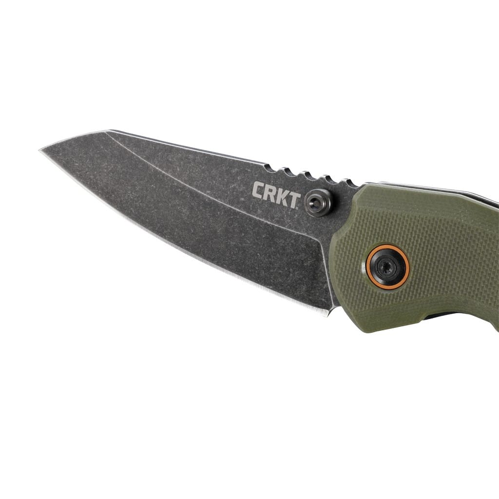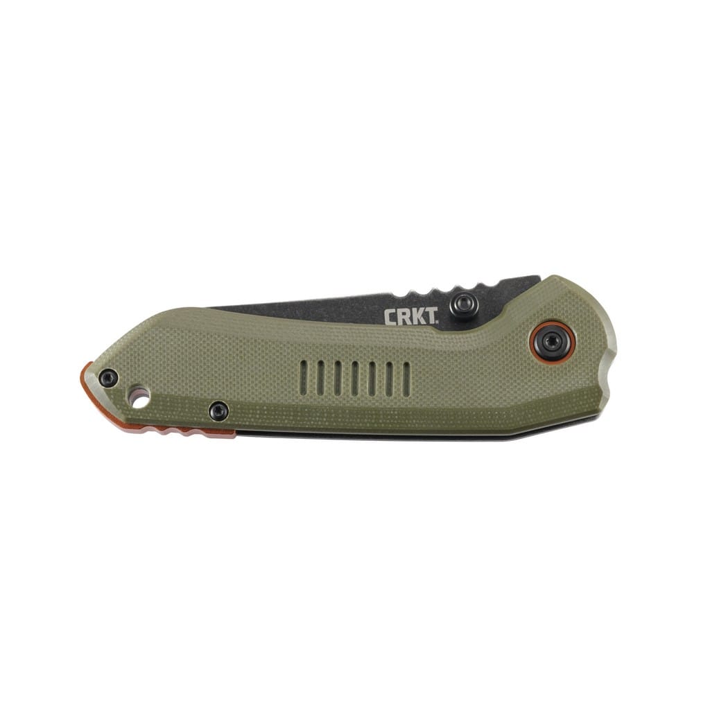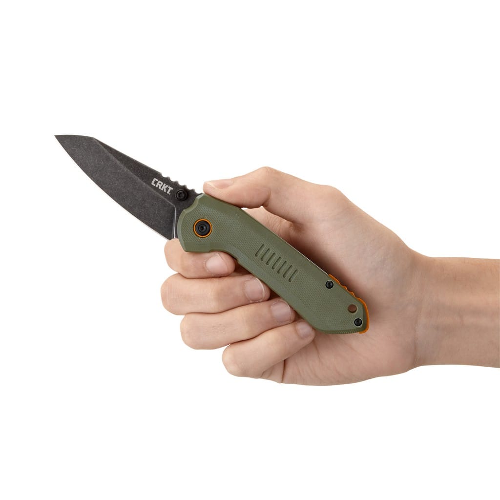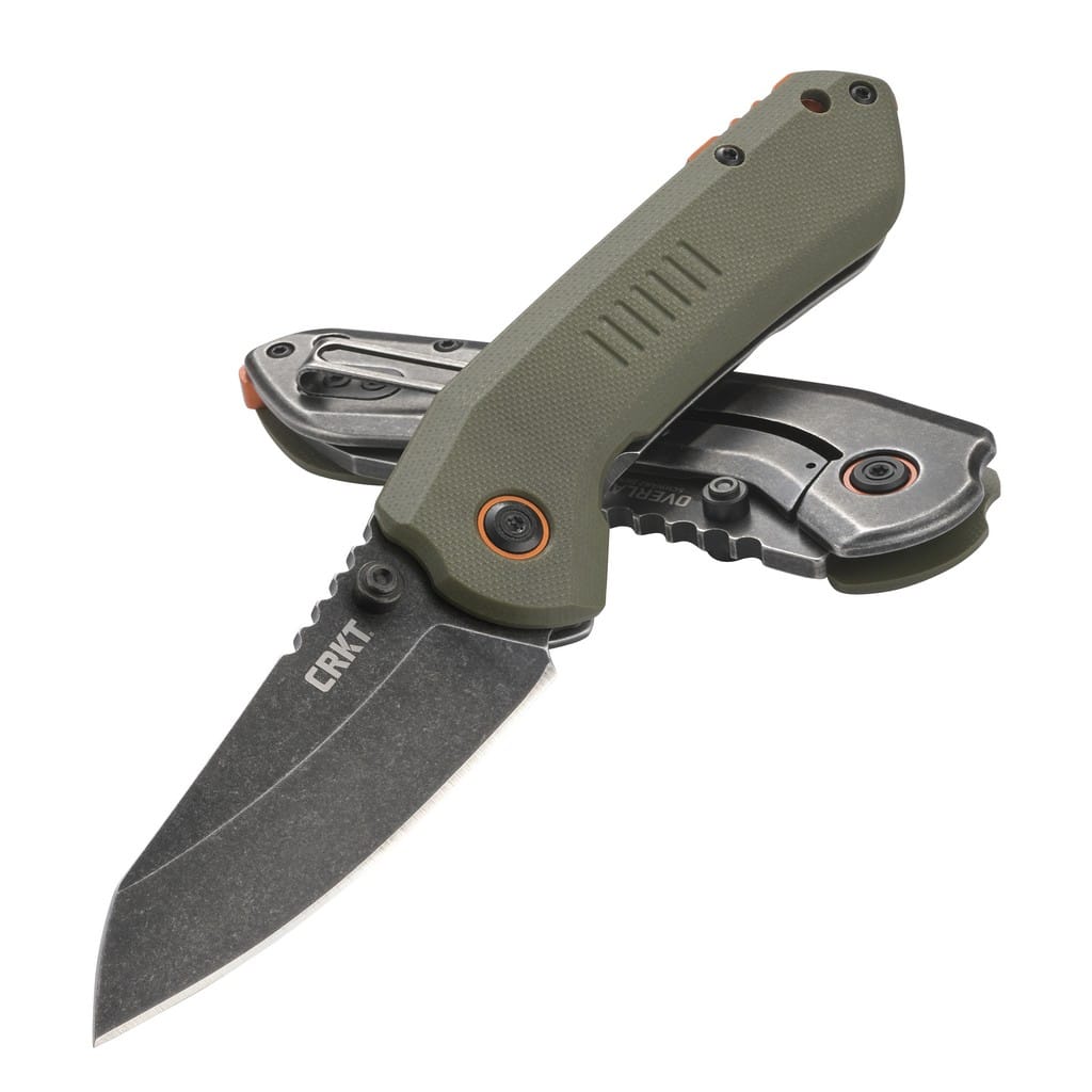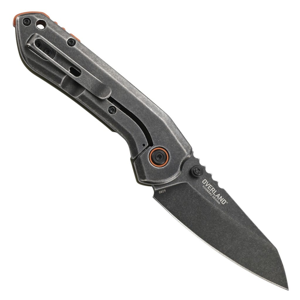Overland amerykańskiej firmy CRKT to wersja noża 4x4 do pracy w terenie, którego autorem jest T.J. Schwarz, niedoszły projektant samochodów. Ostrze o profilu Sheepsfoot wykonano ze stali nierdzewnej 8Cr13MoV i wykończono na czarno metodą Stonewash pozostawiającą nieregularną powłokę dobrze maskującą rysy powstające podczas eksploatacji. Duży obustronny kołek na klindze umożliwia jej szybkie rozłożenie jedną ręką. Bezpieczeństwo pracy poprawia karbowane oparcie dla kciuka na grzbiecie głowni oraz solidna blokada Frame Lock, która chroni przed przypadkowym złożeniem się narzędzia gdy jest w użyciu. Rękojeść to połączenie lekkiego tworzywa G10 o antypoślizgowej fakturze na jednej ze stron, z gładką stalową ramą na drugiej. Odpowiednie wyprofilowanie gwarantuje dobrą przyczepność do dłoni i zapewnia pewny chwyt. Pomarańczowe akcenty w postaci backspacera oraz pierścieni wokół głównej śruby pivot dodają unikatowego wyglądu całej konstrukcji. Na zakończeniu znajduje się otwór na linkę oraz klips mocujący do wygodnego przenoszenia noża w kieszeni spodni.