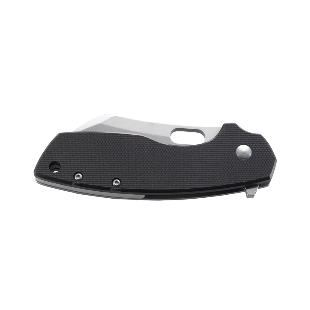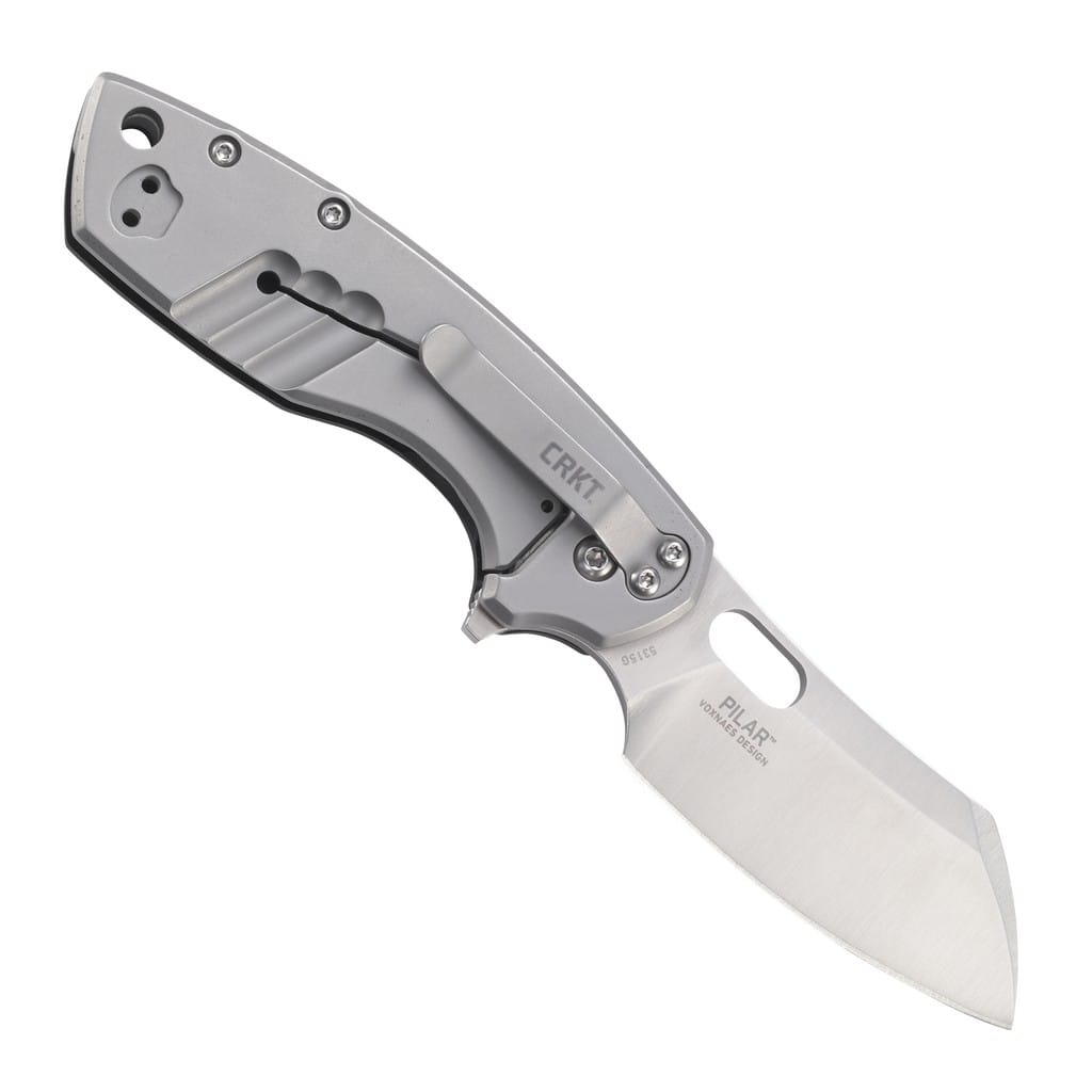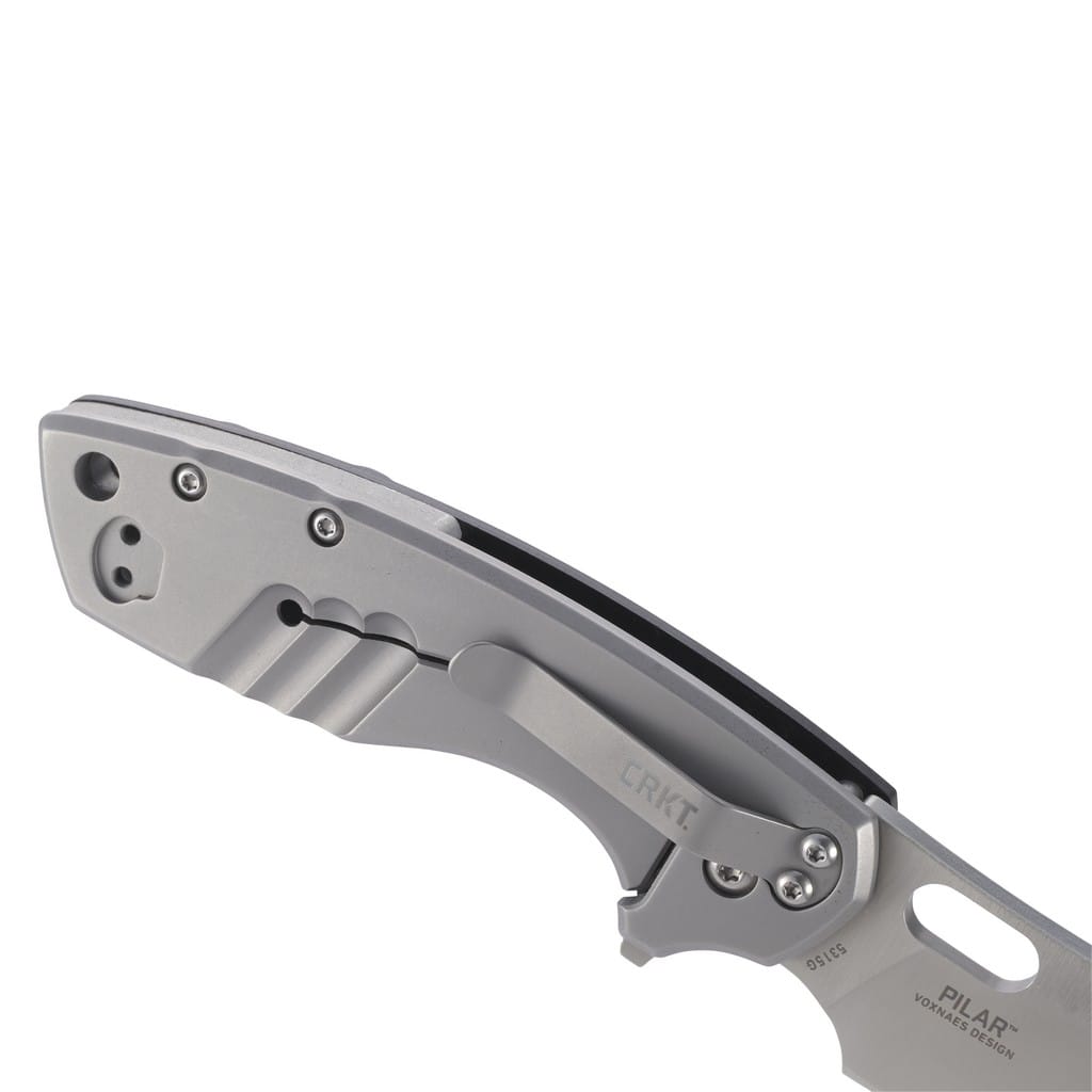 Duński projektant noży Jesper Voxnaes stworzył kompaktowy model do codziennego użytku charakteryzujący się minimalistyczną konstrukcją a jednocześnie dostarczający maksymalną użyteczność. Pilar Large swoją nazwę zawdzięcza ukochanej łodzi Ernesta Hemingwaya, której używał do patrolowania Morza Karaibskiego i wypatrywania niemieckich okrętów podwodnych podczas II wojny światowej. Gładkie ostrze o profilu Sheepsfoot wykonano ze stali nierdzewnej 8Cr14MoV o twardości 58-60HRC metodą Satin, która pozostawia drobne ryski lekko matujące powierzchnię. Szybkie wysunięcie głowni możliwe jest za pomocą otworu na palec lub flippera, a przed przypadkowym złożeniem noża gdy jest w użyciu chroni solidna blokada Frame Lock. Rękojeść to połączenie stali nierdzewnej o matowym wykończeniu na jednej ze stron z okładziną z tworzywa G10 na drugiej. Antypoślizgowa faktura zastosowanego materiału zwiększa przyczepność dłoni i poprawia chwyt. Uzupełnienie konstrukcji stanowi otwór na linkę oraz klips umożliwiający przymocowanie foldera do kieszeni lub ekwipunku.