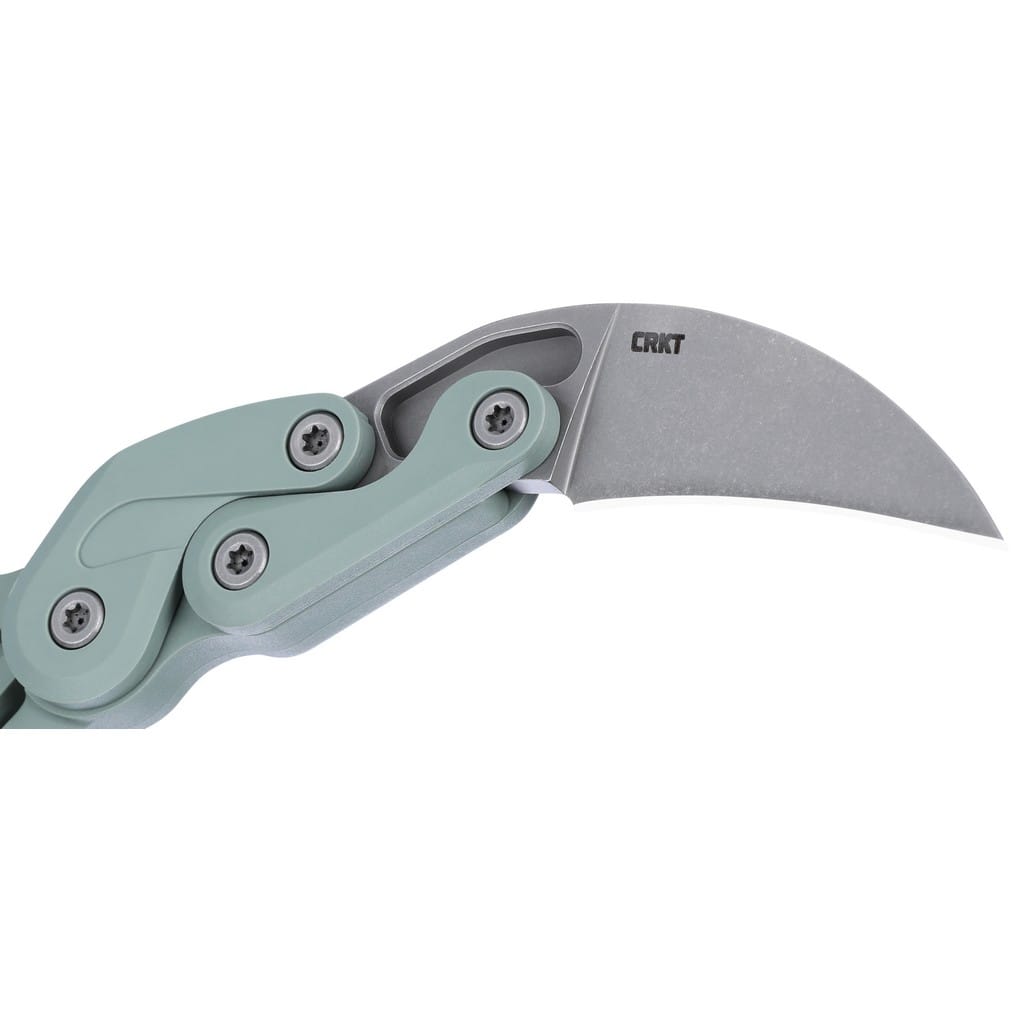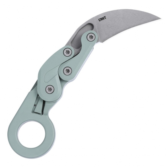 Provoke amerykańskiej firmy CRKT to model nawiązujący do starożytnego designu karambita, skrywający futurystyczny sekret. Jest to pierwszy w historii nóż wyposażony w technologię Kinematic. Pozwala na szybkie wysunięcie ostrza przy pomocy kciuka. Nacisk na górną poprzeczkę konstrukcji wypycha głownię do przodu i blokuje ją, zaś w celu złożenia foldera wystarczy przesunąć dyskretną dźwignię. Zaprojektowany przez Joe Caswella mechanizm przenosi nas w przyszłość i stanowi jeden z najbardziej innowacyjnych pomysłów w tej branży. Klinga o zakrzywionym do dołu drapieżnym profilu Hawkbill została wykonana z japońskiej stali nierdzewnej AUS-8 odpornej na korozję, twardej i długo trzymającej ostrość. Wykończenie jej metodą Stonewash pozostawia nieregularną powłokę świetnie maskującą rysy i zadrapania powstające podczas eksploatacji. Charakterystyczny kształt ostrza idealnie sprawdzi się do głębokiego cięcia i dziurkowania. Rękojeść zrobiono z termoplastycznego, lekkiego i trwałego materiału Grivory w kolorze szałwii. Zakończenie w postaci okrągłej głowicy na palec przedłuża chwyt i umożliwia pełną kontrolę nad nożem podczas pracy. Dodatkowo na uwagę zasługuje klips mocujący ukształtowany niemalże w jednej linii z rękojeścią. Takie rozwiązanie zwiększa komfort użytkowania, dając możliwość korzystania z klipsa jedynie wtedy, gdy zachodzi taka potrzeba.