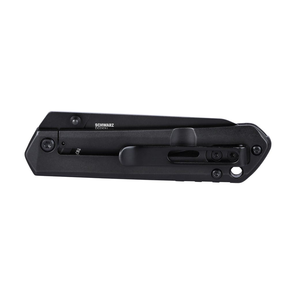 Straight firmy CRKT to kompaktowy model EDC zaprojektowany przez knifemakera T.J. Schwarz, niedoszłego konstruktora samochodów. Model jest całkowicie czarny, a jego design elegancki i nowoczesny, dlatego folder sprawdzi się do różnych aktywności. Ostrze o profilu Wharncliffe, charakteryzujące się doskonałą precyzją cięcia, zostało wykonane z wysokiej jakości stali narzędziowej D2 długo utrzymującej właściwą ostrość krawędzi tnącej. W celu zabezpieczenia głowni przed negatywnym działaniem czynników zewnętrznych i odblaskami pokryto ją czarną oksydą. Klingę osadzono na łożyskach kulkowych IKBS, która przy wykorzystaniu obustronnego kołka wysuwa się płynnie i gładko. Prosta obsługa jedną ręką zadowoli zarówno osoby prawo, jak i leworęczne. Solidna i niezawodna blokada Frame Lock, wzbogacona o utwardzoną, stalową wkładkę lockbar, czuwa nad bezpieczeństwem użytkownika, gdy narzędzie jest w użyciu. Rękojeść to połączenie gładkiej stali na jednej ze stron, z teksturowanym tworzywem G10 na drugiej. Na zakończeniu umieszczono otwór umożliwiający przełożenie breloka ozdobnego lub paracordu, który ułatwi chwytanie noża. Konstrukcję uzupełnia klips mocujący, pozwalający na wygodne przenoszenie foldera w kieszeni spodni lub przy wyposażeniu.