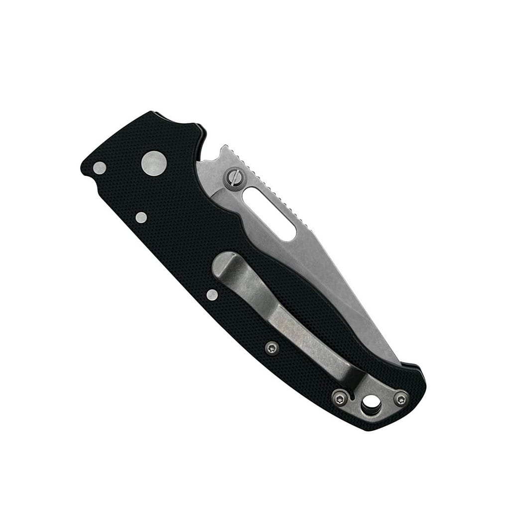 Model AD20.5 amerykańskiej firmy Demko Knives to idealna propozycja niezawodnego noża do codziennego noszenia. Praktyczny design oraz dogłębnie przemyślana konstrukcja czyni z niego świetny wybór do kolekcji. Głownia o uniwersalnym profilu Clip Point została zrobiona z wysokiej jakości stali narzędziowej D2, twardej, odpornej na zużycie i długo utrzymującej właściwą ostrość krawędzi tnącej. Wykończenie jej metodą Stonewash pozostawia nieregularną powłokę bardzo dobrze maskującą rysy i zadrapania powstające podczas eksploatacji. Obustronny kołek oraz otwór na klindze pozwalają zarówno osobom prawo, jak i leworęcznym na szybkie wysunięcie ostrza. Dodatkowo system łożysk kulkowym wpływa na płynne i gładkie działanie narzędzia. Karbowana górna krawędź głowni stanowi stabilne wsparcie dla kciuka i ułatwia realizację precyzyjnych zadań. Występujący w modelu mechanizm Shark Lock, zaprojektowany przez Andrew Demko, to jedna z najbardziej innowacyjnych i najsilniejszych blokad na rynku. Rampa w postaci płetwy na grzbiecie noża gwarantuje bezpieczeństwo podczas pracy oraz szybkie składanie foldera jedną ręką, co niezmiernie ucieszy niejednego użytkownika. Rękojeść z odpornego na warunki atmosferyczne materiału G10 cechuje się delikatnie chropowatą fakturą, która nie wrzyna się w dłonie. Ergonomiczne wyprofilowanie natomiast pozwala na intuicyjne ułożenie palców i pewny chwyt w każdych warunkach. Na zakończeniu znajduje się otwór do przełożenia linki paracord lub ozdobnego breloka. Całość uzupełnia prawo pozycyjny klips mocujący do wygodnego przenoszenie narzędzia w kieszeni spodni lub przy wyposażeniu. Do zestawu dołączono również klips dla osób leworęcznych. AD20.5 doskonale sprawdzi się jako model EDC zapewniający funkcjonalność na wysokim poziomie.