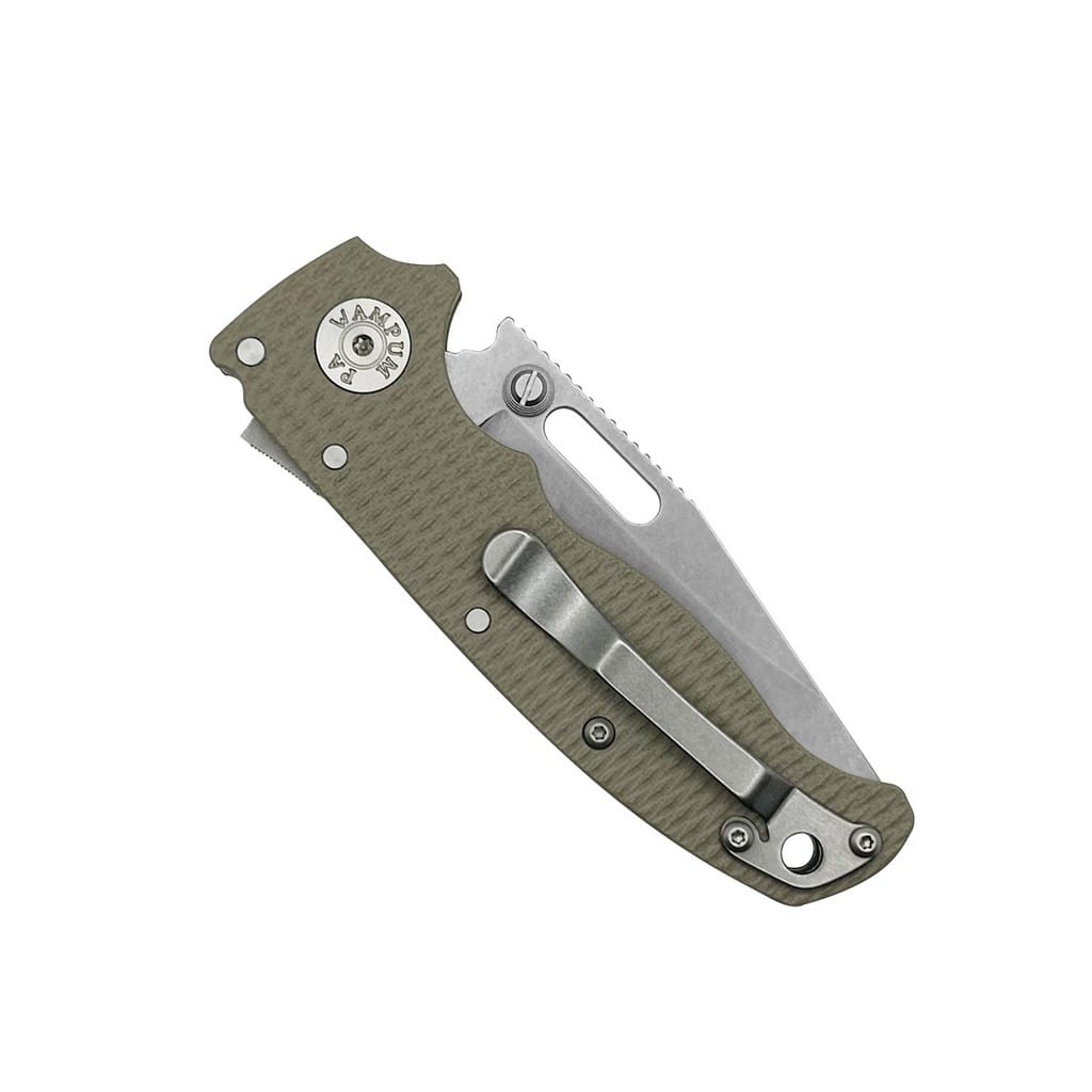 Model AD20.5 firmy Demko Knives to idealna propozycja noża EDC charakteryzująca się wytrzymałością i wysoką jakością wykonania. Praktyczny design oraz dogłębnie przemyślana konstrukcja czyni z niego świetny wybór do kolekcji. Głownia o uniwersalnym profilu Clip Point została zrobiona z amerykańskiej stali nierdzewnej klasy premium CPM S35VN. Domieszka niobu zapewnia wyjątkową równowagę pomiędzy odpornością na korozję, a trzymaniem ostrości. Wykończenie klingi metodą Stonewash pozostawia nieregularną powłokę bardzo dobrze maskującą rysy i zadrapania powstające podczas eksploatacji. Obustronny kołek oraz otwór na ostrzu pozwalają zarówno osobom prawo, jak i leworęcznym na szybkie rozłożenie foldera. Dodatkowo system łożysk kulkowym wpływa na płynne i gładkie działanie narzędzia. Karbowana górna krawędź głowni stanowi stabilne wsparcie dla kciuka i ułatwia realizację precyzyjnych zadań. Występujący w modelu mechanizm Shark Lock, zaprojektowany przez Andrew Demko, to jedna z najbardziej innowacyjnych i najsilniejszych blokad na rynku. Rampa w postaci płetwy na grzbiecie gwarantuje bezpieczeństwo podczas pracy oraz szybkie składanie noża jedną ręką, co niezmiernie ucieszy niejednego użytkownika. Rękojeść z odpornego na warunki atmosferyczne materiału G10 cechuje się antypoślizgową fakturą, która zwiększa przyczepność do dłoni, nawet gdy jest ona mokra lub w rękawicy. Ergonomiczne wyprofilowanie natomiast pozwala na intuicyjne ułożenie palców i pewny chwyt w każdych warunkach. Na zakończeniu znajduje się otwór do przełożenia linki paracord lub ozdobnego breloka. Całość uzupełnia prawo pozycyjny klips mocujący do wygodnego przenoszenie narzędzia w kieszeni spodni lub przy wyposażeniu. Do zestawu dołączono również klips dla osób leworęcznych. Model AD20.5 doskonale sprawdzi się w codziennym użytkowaniu u wszystkich miłośników noży, poszukujących niezawodnego foldera zapewniającego funkcjonalność na najwyższym poziomie.