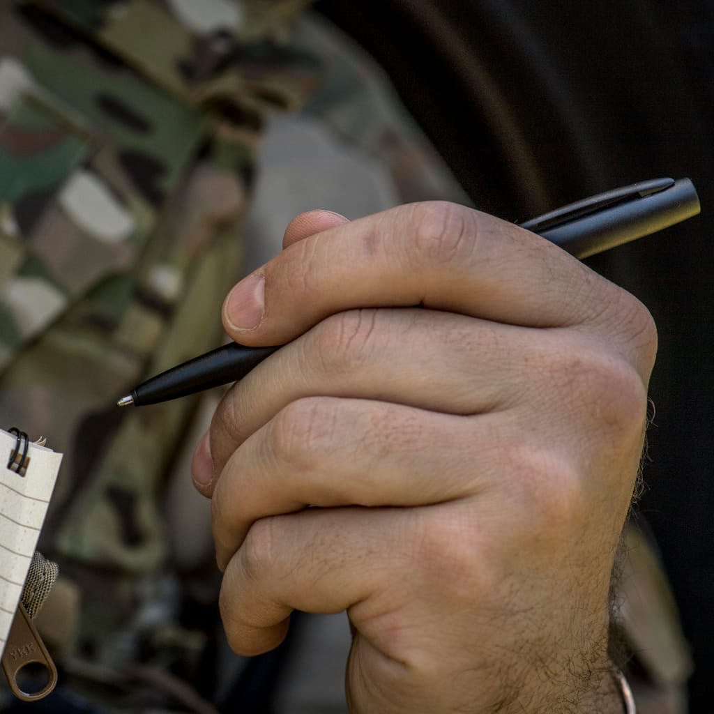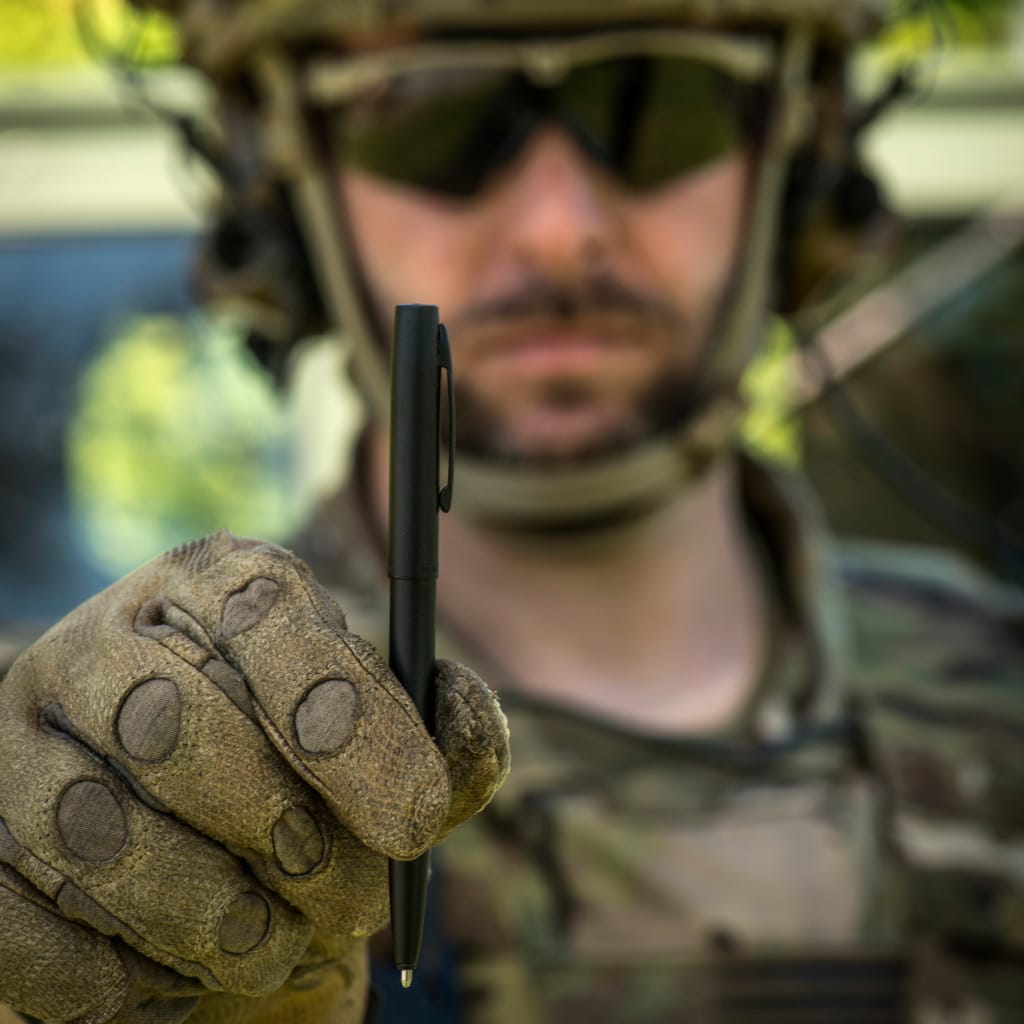 Długopis taktyczny firmy Fisher Space Pen. Długopis ten pisze nawet gdy tekst jest do góry nogami. Bardzo solidna metalowa obudowa powoduje iż długopisu można używać również jako kubotan. Długopis pisze w temperaturach od - 37 do 121 stopni celsjusza. Pisze w każdych warunkach nawet po mokrych nawierzchniach.