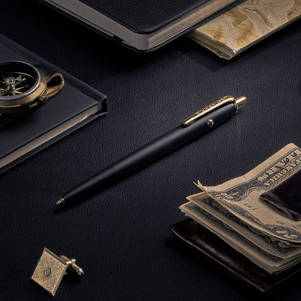 Nowa wersja długopisu AG7 została stworzona na bazie tej samej innowacji co oryginał, który po raz pierwszy w 1968 roku poleciał na Księżyc wraz astronautami statku Apollo 7. Od tamtej pory AG7 jest używany podczas wszystkich załogowych lotów kosmicznych przeprowadzanych przez NASA. Konstrukcja i design długopisu nie zmieniły się od ponad 50 lat, co stanowi wyjątkowy element historii kosmosu i doskonały pomysł na prezent dla każdego miłośnika astronomii. Model AG7H dumnie wyprodukowany w USA charakteryzuje się solidną obudową wykonaną z mosiądzu. Wykończenie Cerakote, w pięknym grafitowo-czarnym kolorze, zwiększa wytrzymałość długopisu. Jest to ceramiczna i opatentowana formuła na bazie polimerów oferująca odporność na zarysowania, korozję, ciepło i chemikalia. Taki rodzaj powłoki ze względu na swoje funkcjonalne właściwości od lat stosowany jest w produktach wysokiej jakości w branży taktycznej, wojskowej oraz motoryzacyjnej. Dodatkowo złote elementy pokryto trwałym azotkiem tytanu, wykorzystywanym w luksusowych zegarkach i narzędziach. Wygodny system wysuwania wkładu, cechujący się rozpoznawalnym kliknięciem, to kolejna jego zaleta. Wystarczy wcisnąć przycisk znajdujący się na zakończeniu korpusu, aby uzyskać gotowy do pracy długopis. Boczny guzik służy natomiast do chowania wkładu z powrotem do obudowy. Sercem AG7H jest czarny wkład ciśnieniowy o średniej grubości linii piszący nawet trzy razu dłużej od zwykłych wkładów. Niezawodność notowania w każdych warunkach, zarówno w upale, jak i na mrozie, na mokrych lub natłuszczonych nawierzchniach, do góry nogami oraz w stanie nieważkości, gwarantuje twarda kulka wykonana z węglika wolframu. Model posiada także klips umożliwiający wygodne przenoszenie produktu w kieszeni koszuli lub przypięcie do notatnika. Długopis zapakowano w kartonowe pudełko ozdobne, idealne na gotowy podarunek dla bliskiej osoby.