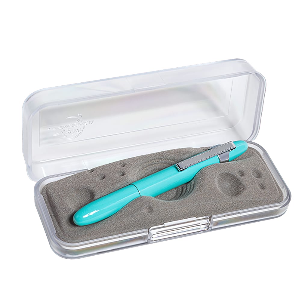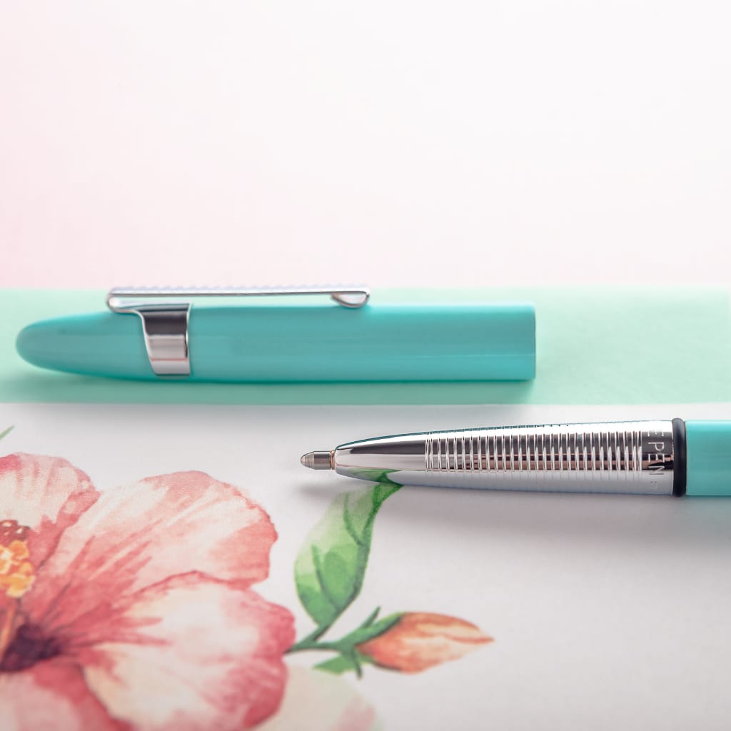 Długopisy firmy Fisher Space Pen uznaje się za przykład sztuki przemysłowej, które przez lata wystawiane były w Muzeum Sztuki Nowoczesnej w Nowym Jorku, a ich klasyczny wygląd był tematem wielu artykułów. Oryginalny Bullet został zaprojektowany przez Paula Fishera i wykonany z aluminium w lipcu 1948 roku. Był to pierwszy model kulkowy, który szybko stał się najpopularniejszym dwudziestego wieku. Bullet 400TBLC to elegancki i kompaktowy długopis zrobiony z mosiądzu o chromowo-turkusowym wykończeniu. Po rozłożeniu tworzy pełnowymiarowy i dobrze zbalansowany pisak. Żłobienia na wysokości chwytu sprawiają, że palce nie ześlizgują się i gwarantują wygodne użytkowanie. W pozycji zamkniętej zajmuje niewiele miejsca, dzięki czemu z łatwością schowamy go do portfela czy organizera a klips mocujący pozwala na zaczepienie go o krawędź kieszeni lub przy plecaku. W komplecie znajduje się wymienny wkład z czarnym atramentem o średniej grubości linii, który pozwala na pisanie w zakresie temperatur od -37°C do 120°C, po mokrych nawierzchniach oraz do góry nogami a nawet pod wodą. Model zapakowano w pudełko z tworzywa co sprawia, że całość tworzy idealny przedmiot na prezent dla bliskiej osoby.